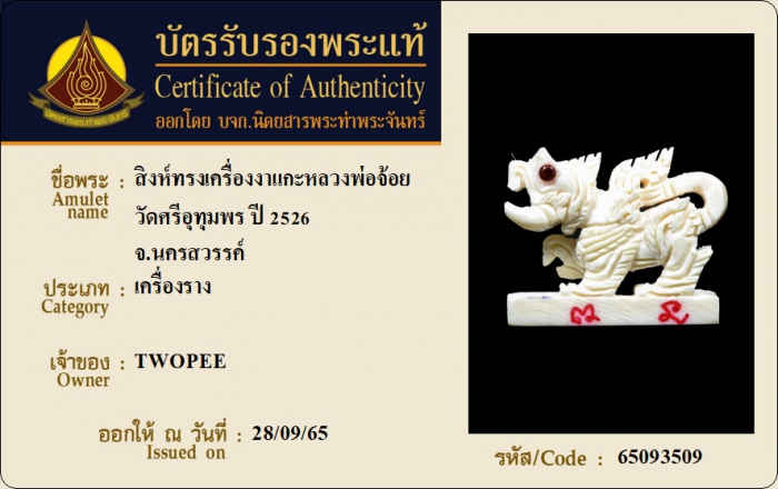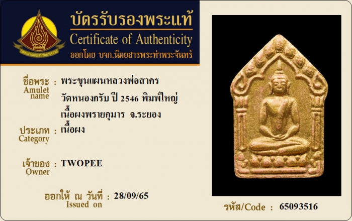 ค้นหาใบการันตีพระแท้