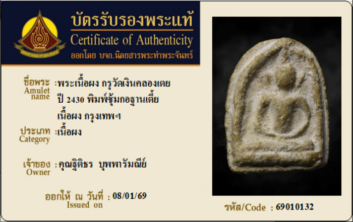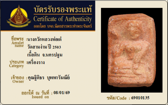 ค้นหาใบการันตีพระแท้
