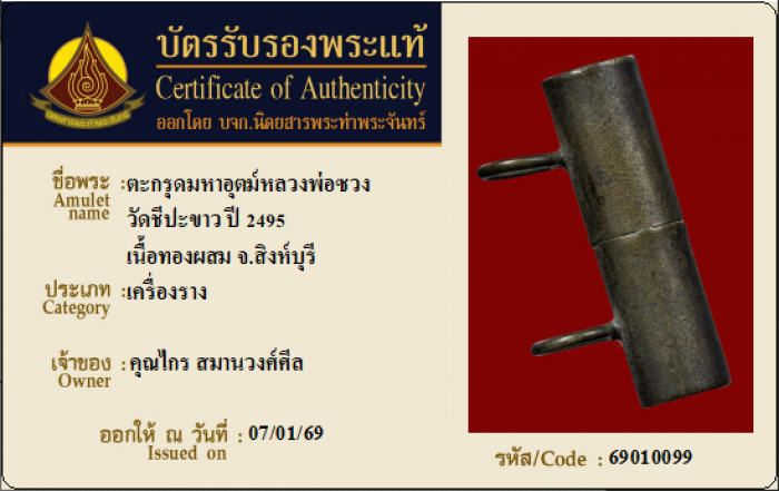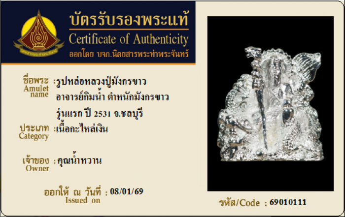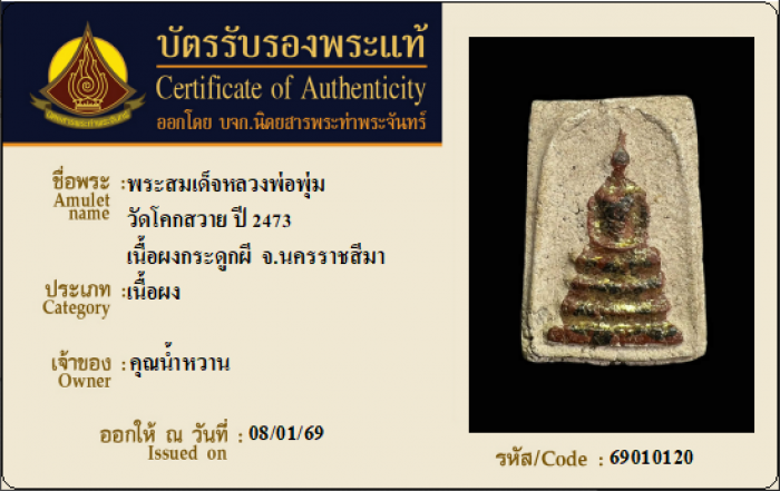 ค้นหาใบการันตีพระแท้