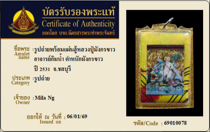 ค้นหาใบการันตีพระแท้