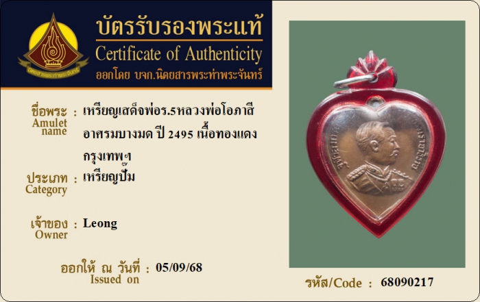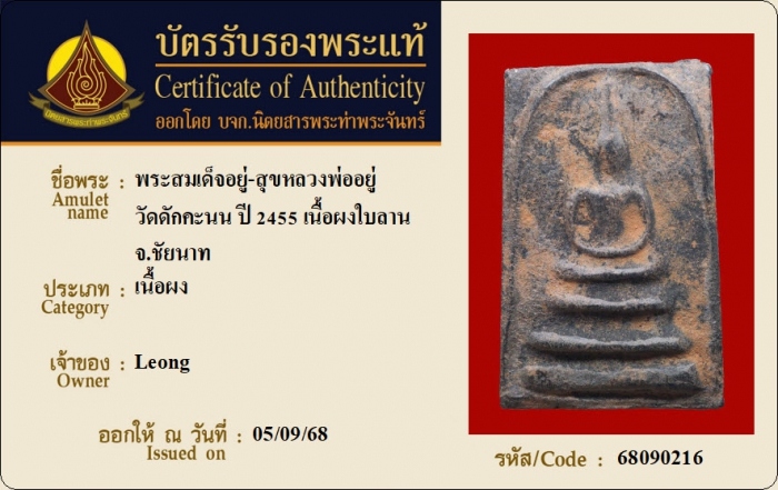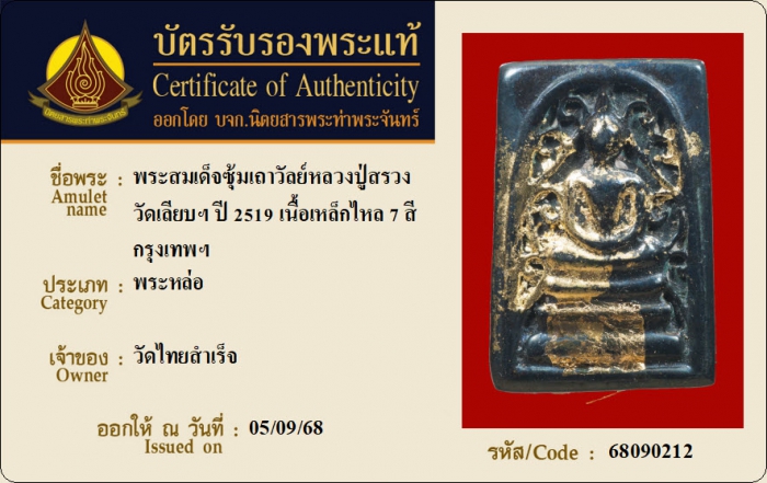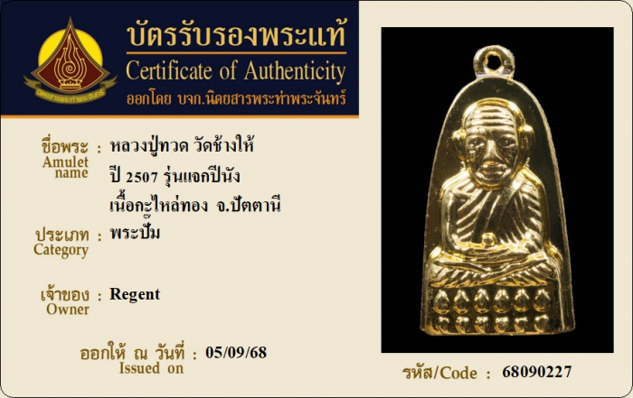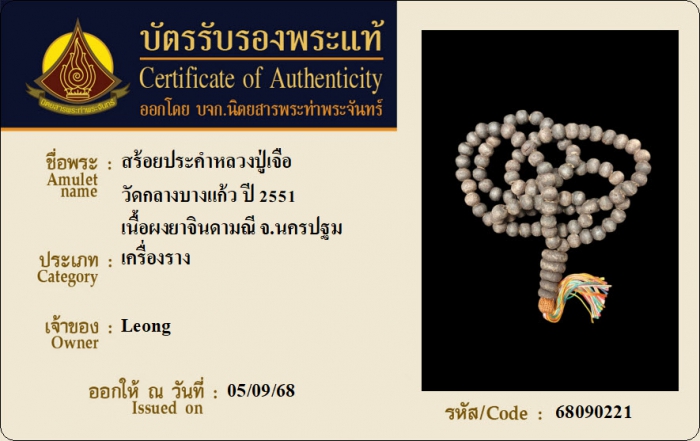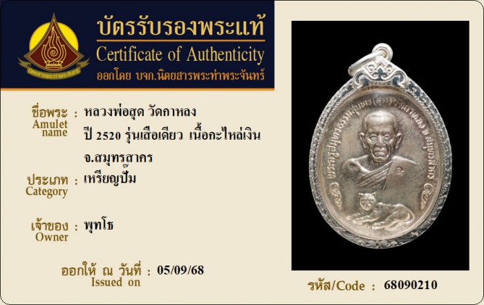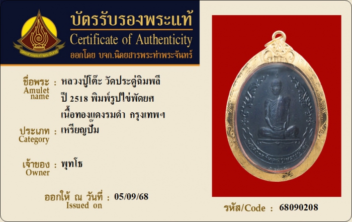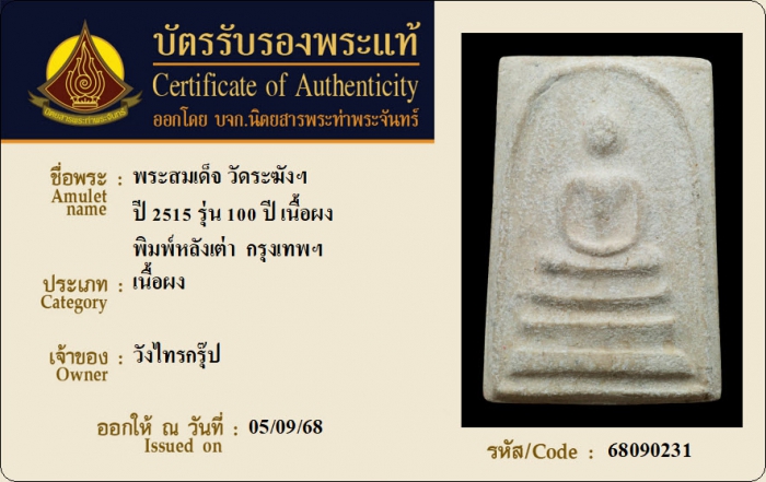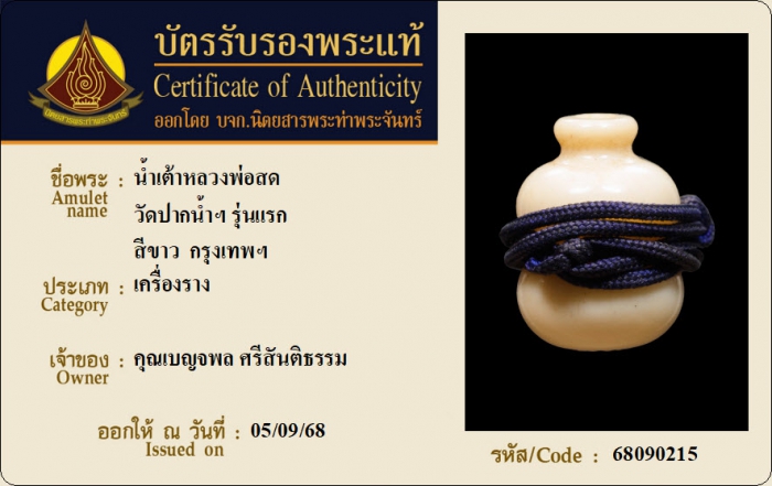 ค้นหาใบการันตีพระแท้