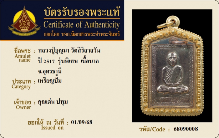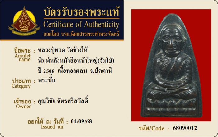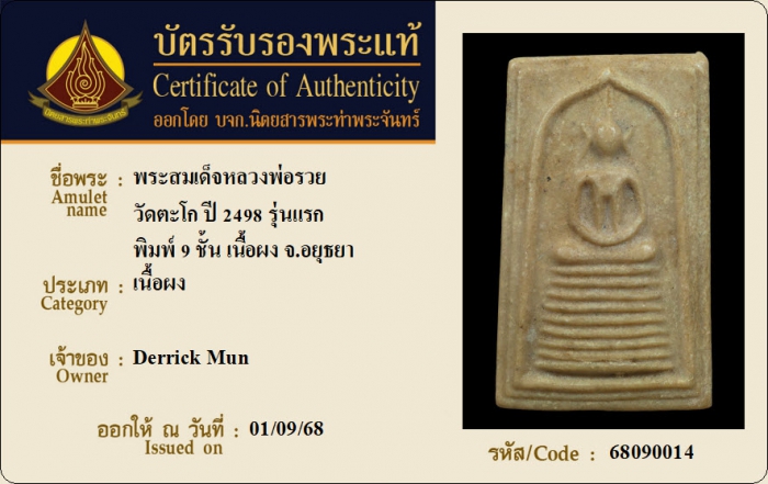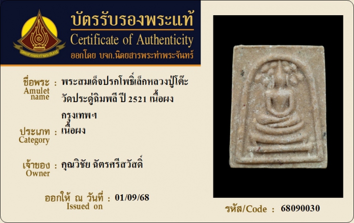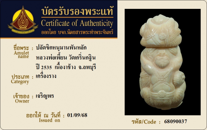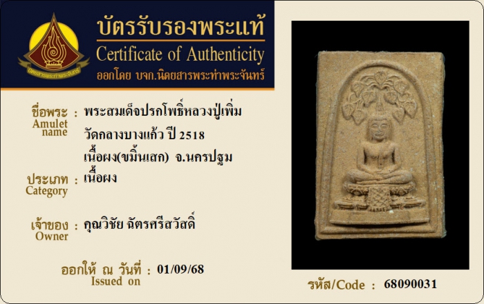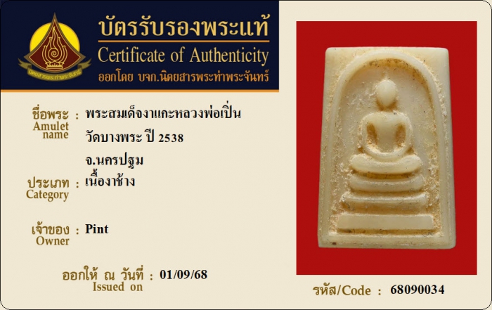 ค้นหาใบการันตีพระแท้