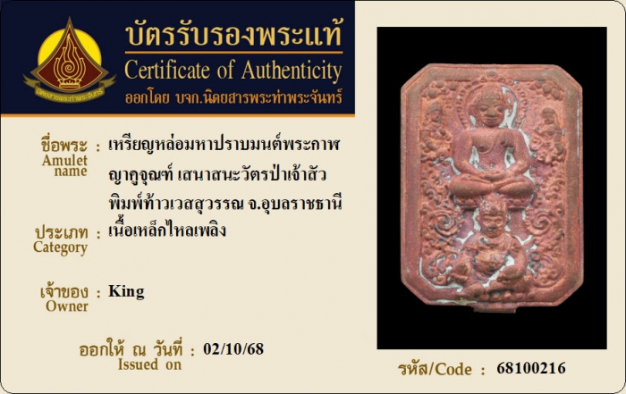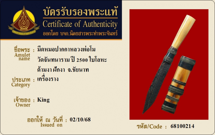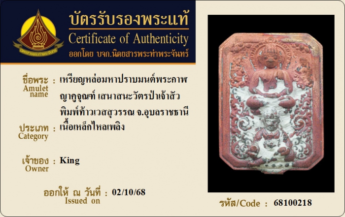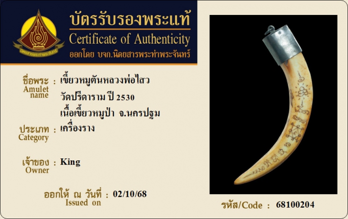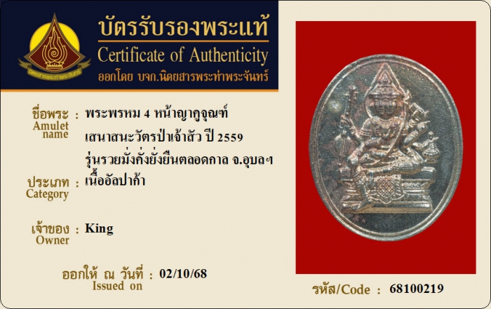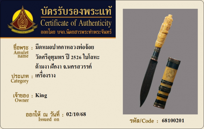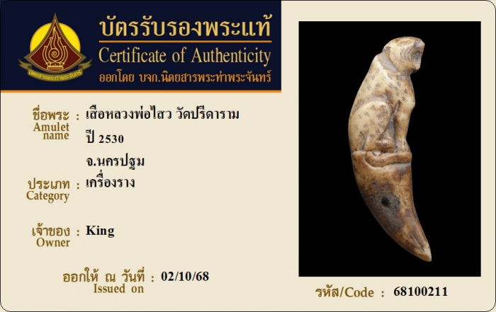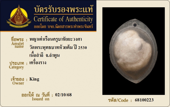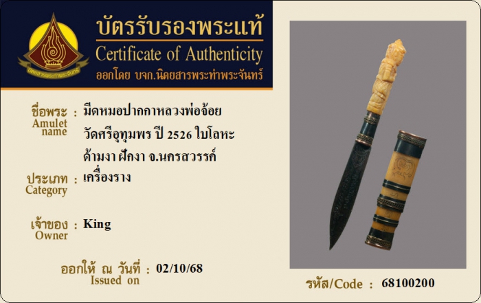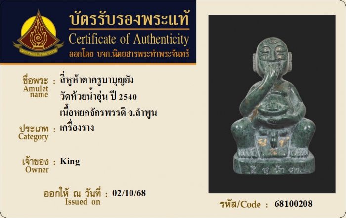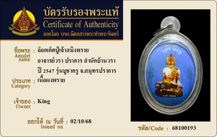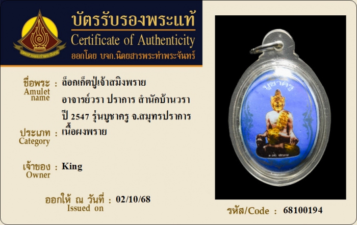 ค้นหาใบการันตีพระแท้