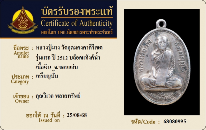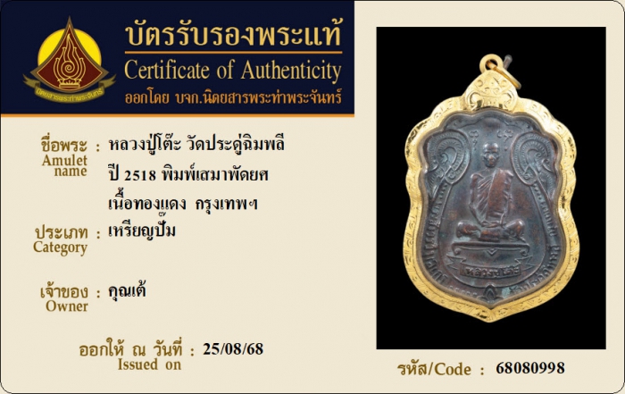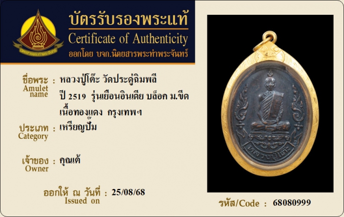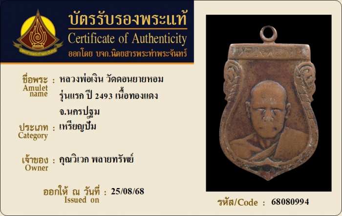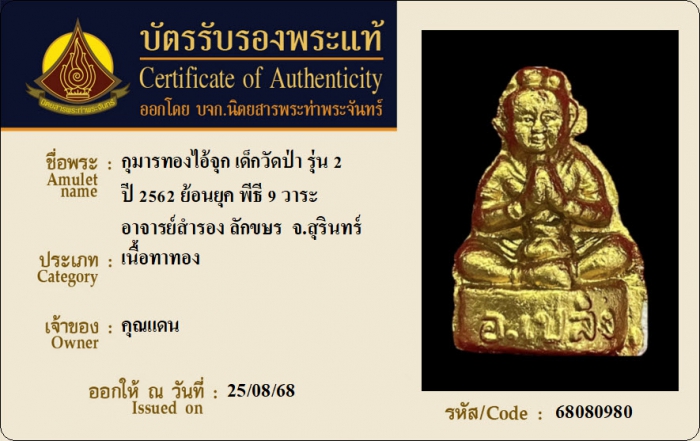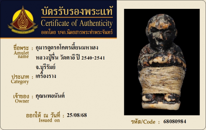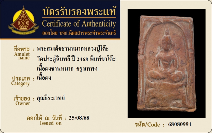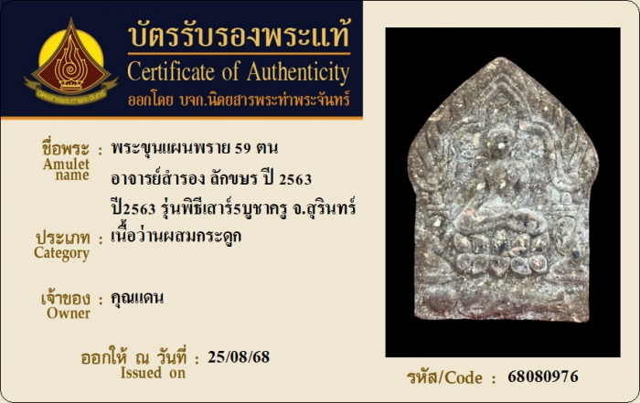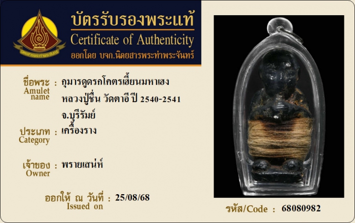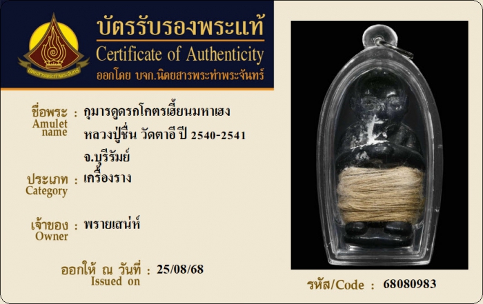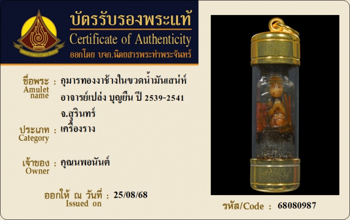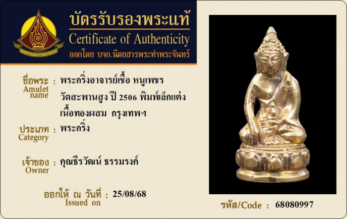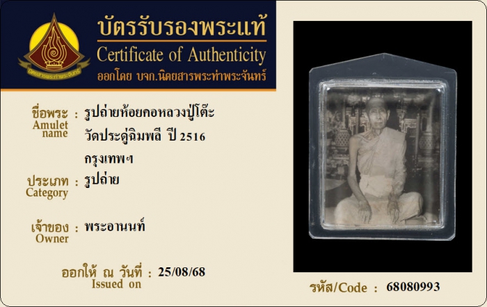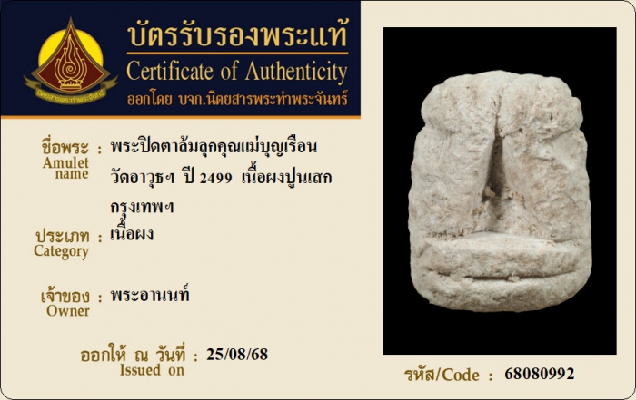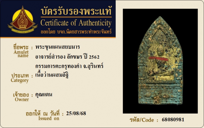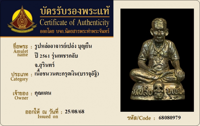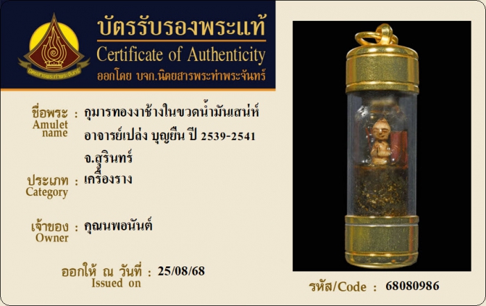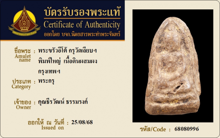 ค้นหาใบการันตีพระแท้