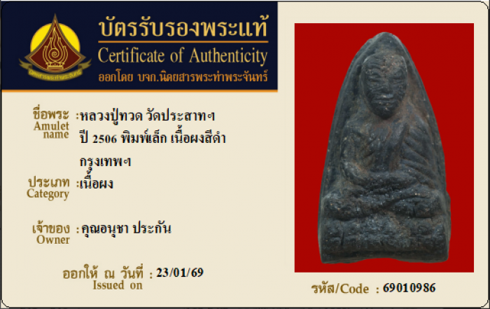 ค้นหาใบการันตีพระแท้