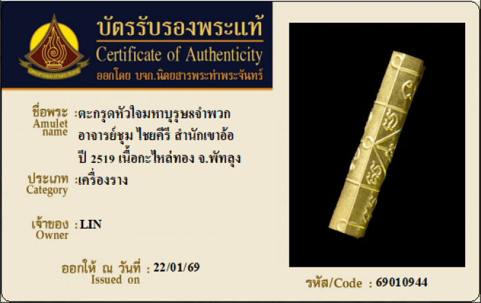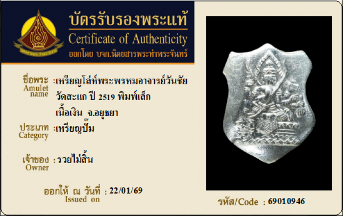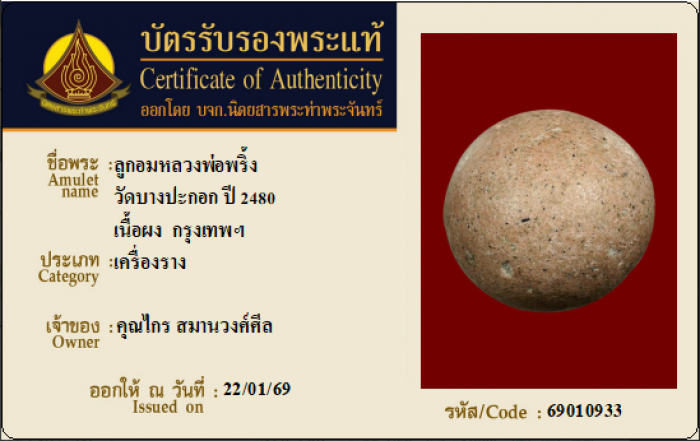 ค้นหาใบการันตีพระแท้