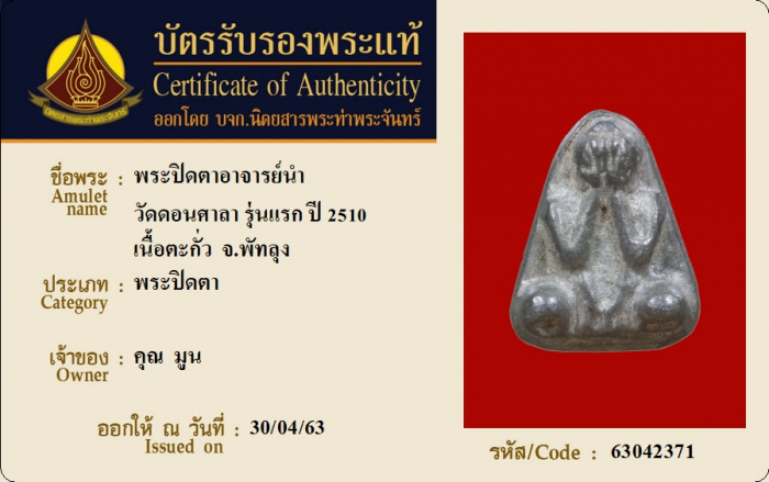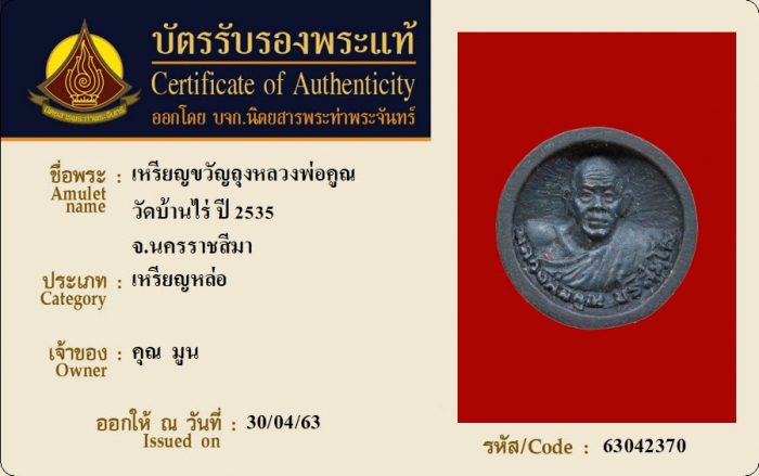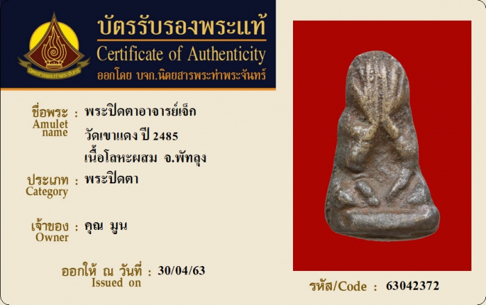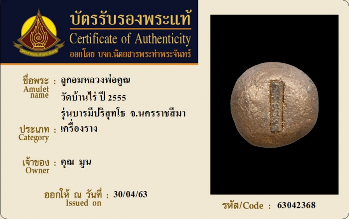 ค้นหาใบการันตีพระแท้