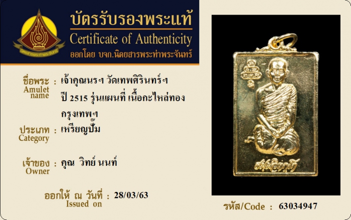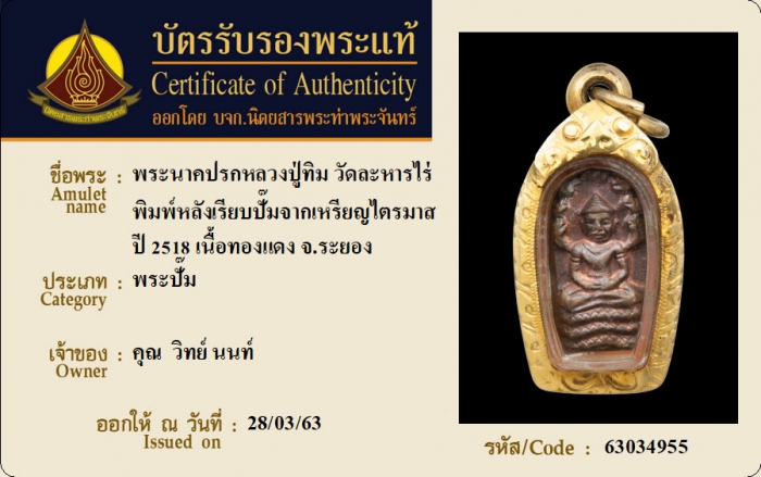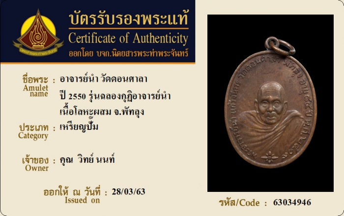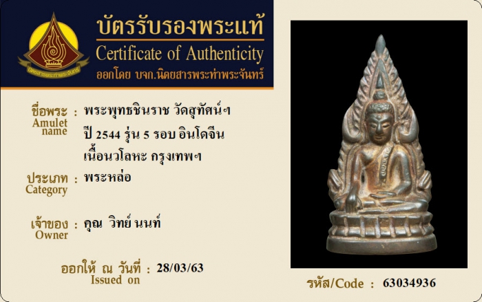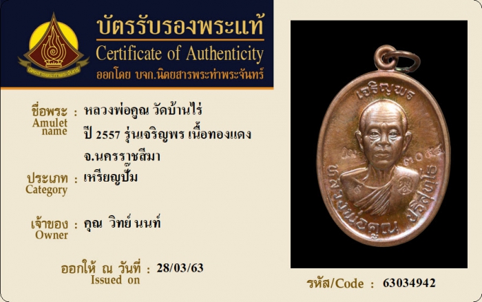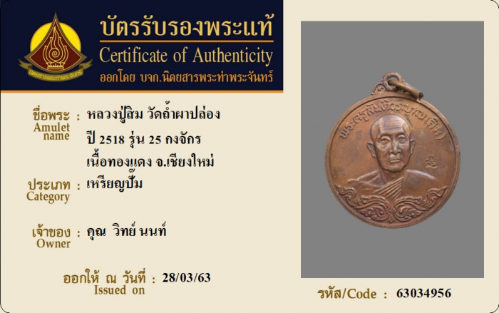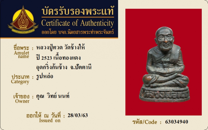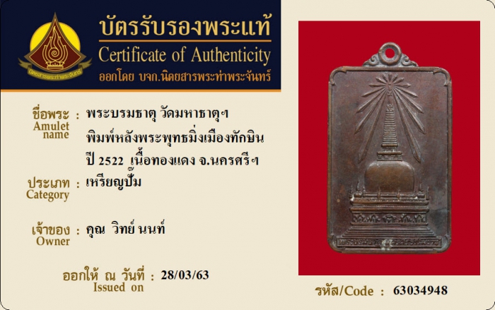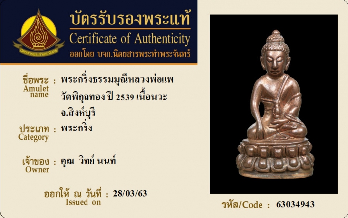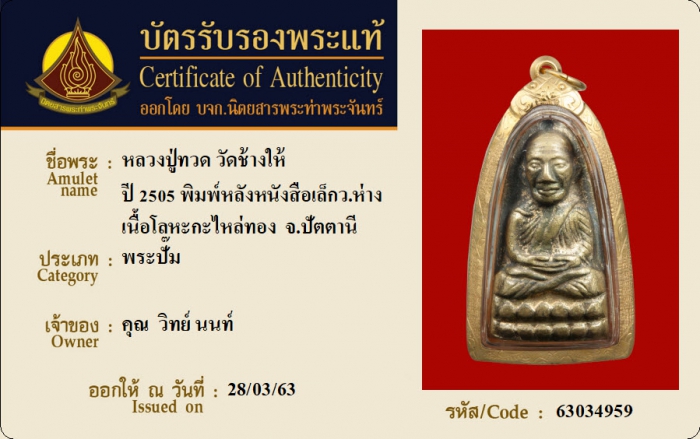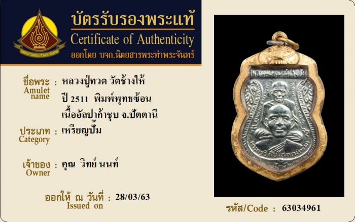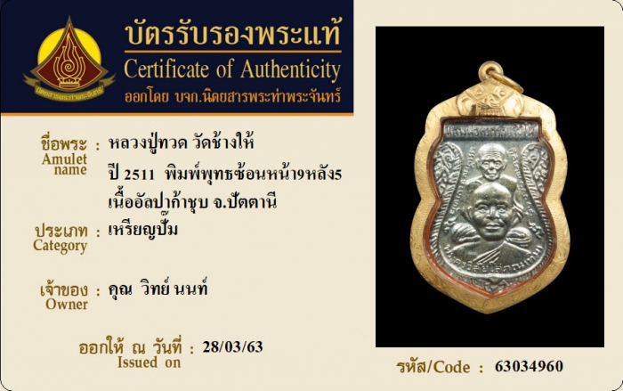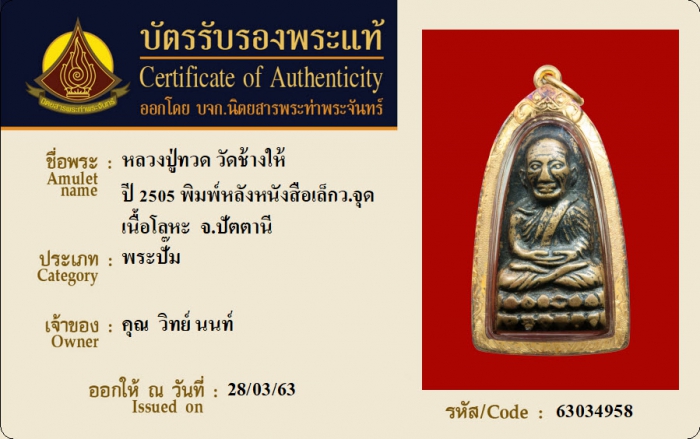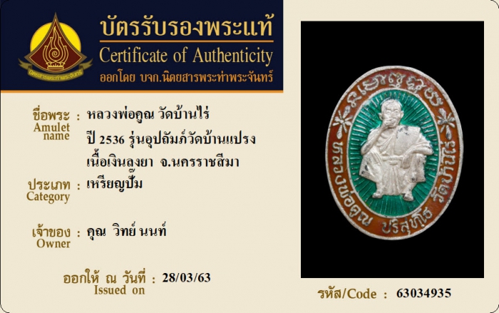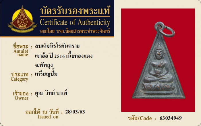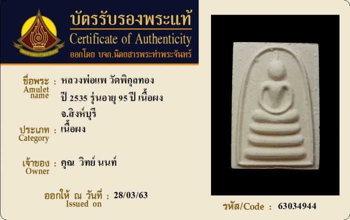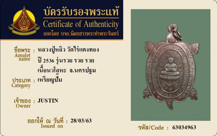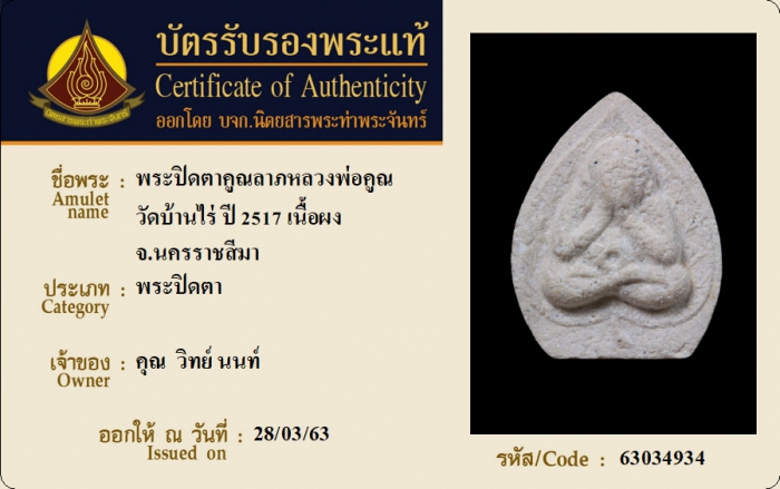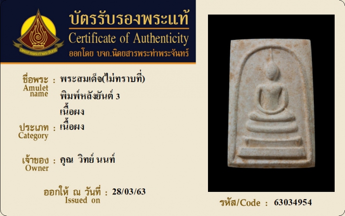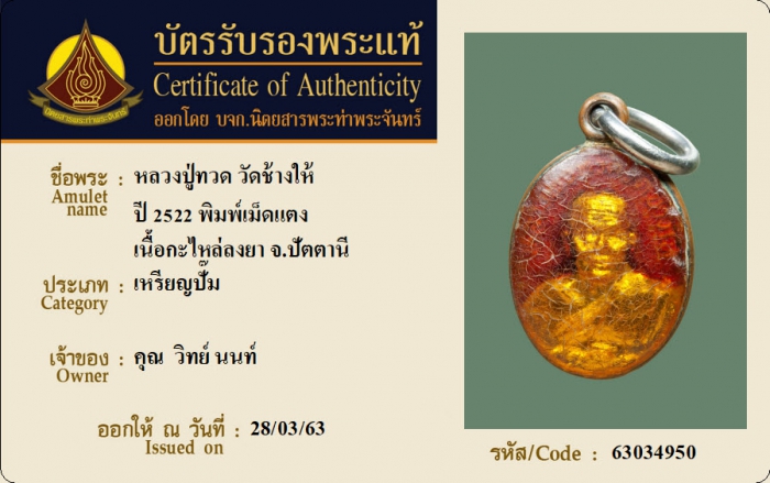ค้นหาใบการันตีพระแท้