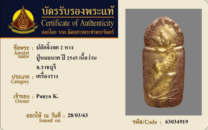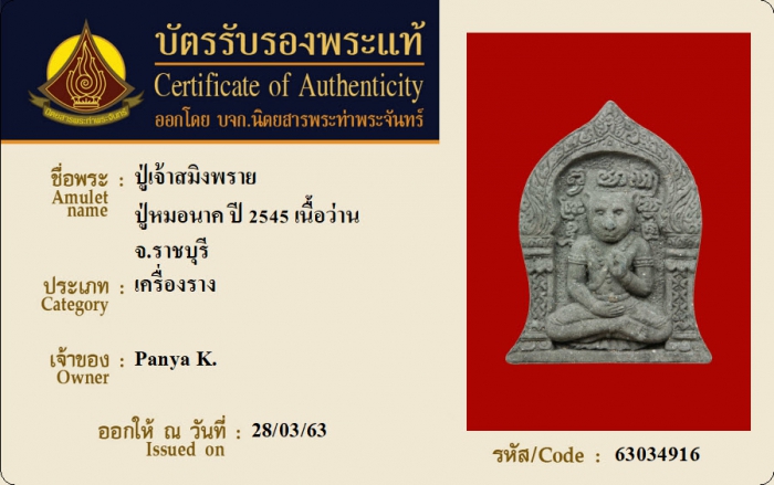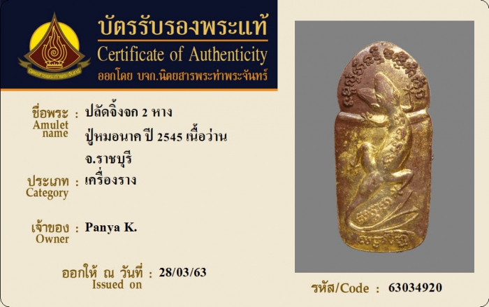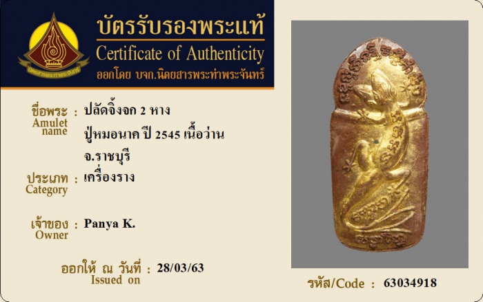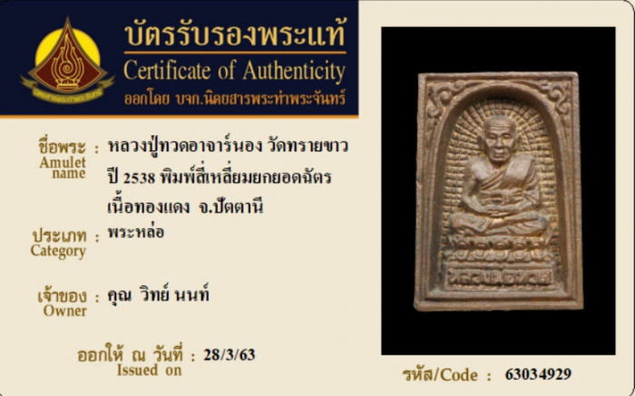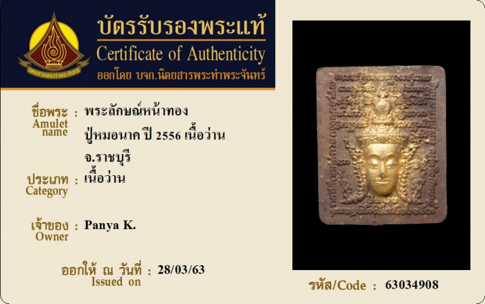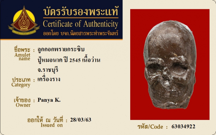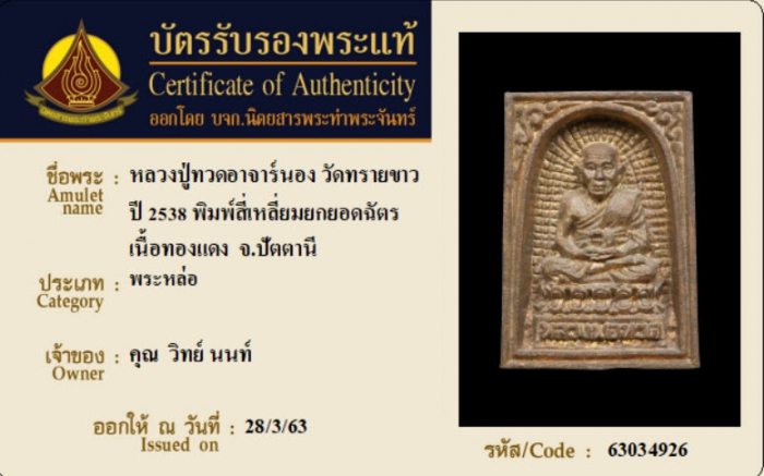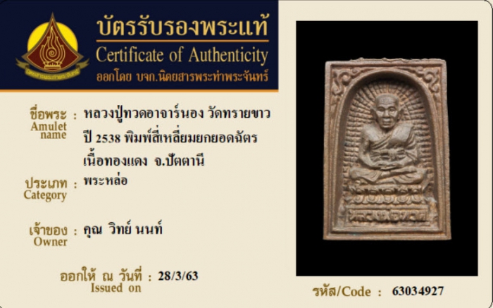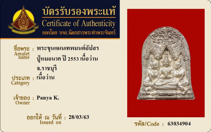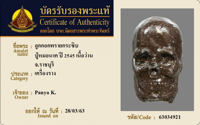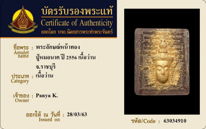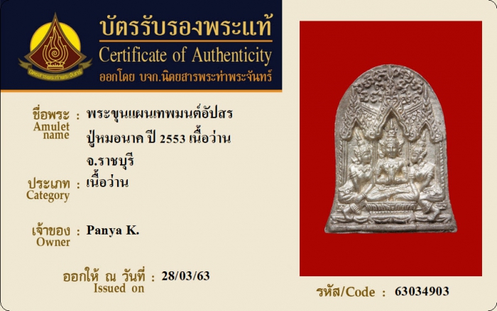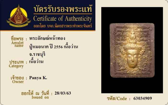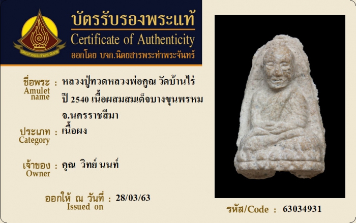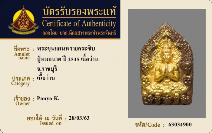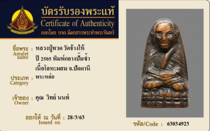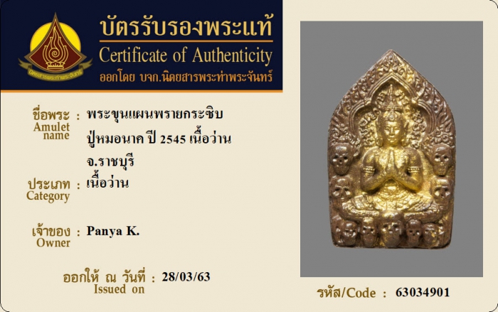 ค้นหาใบการันตีพระแท้