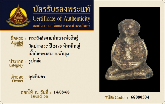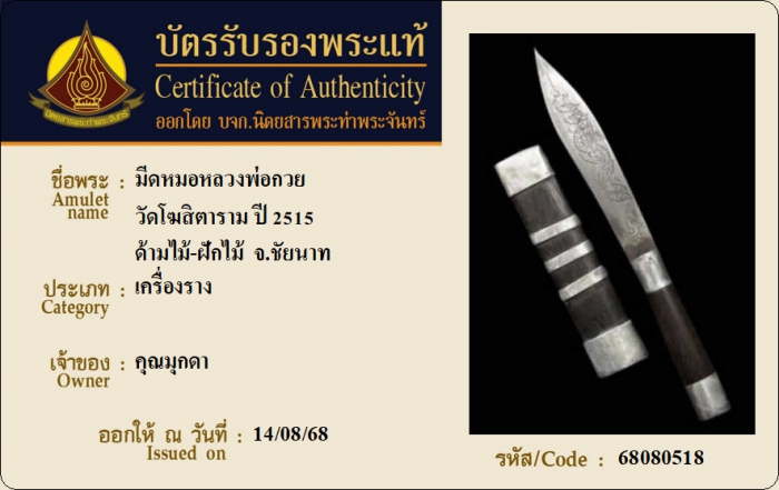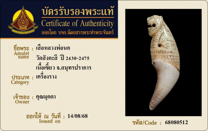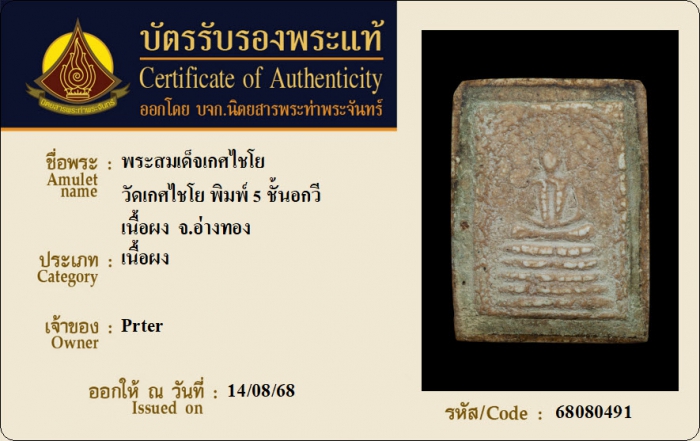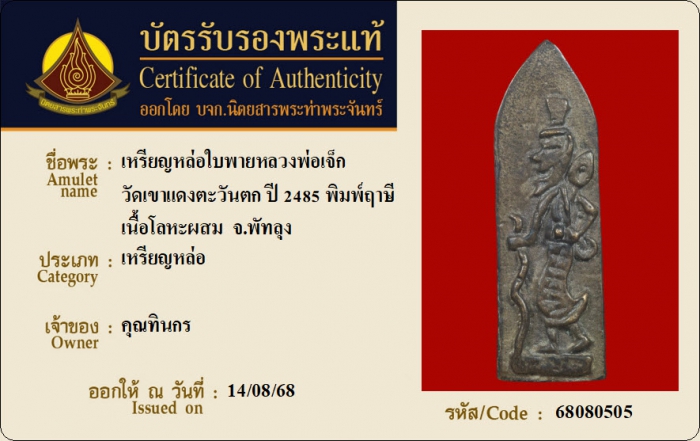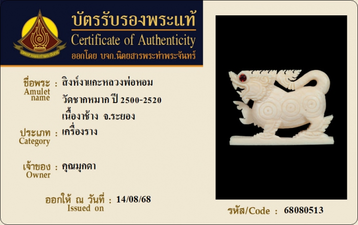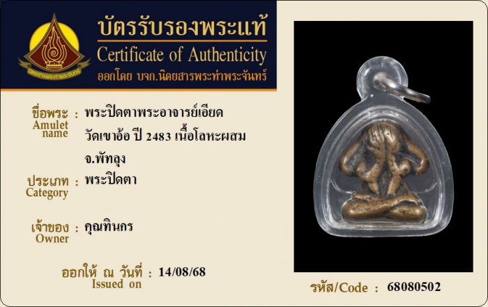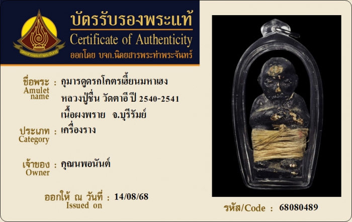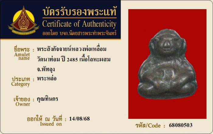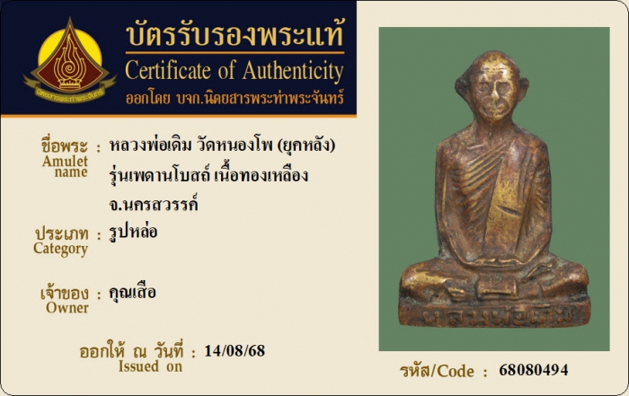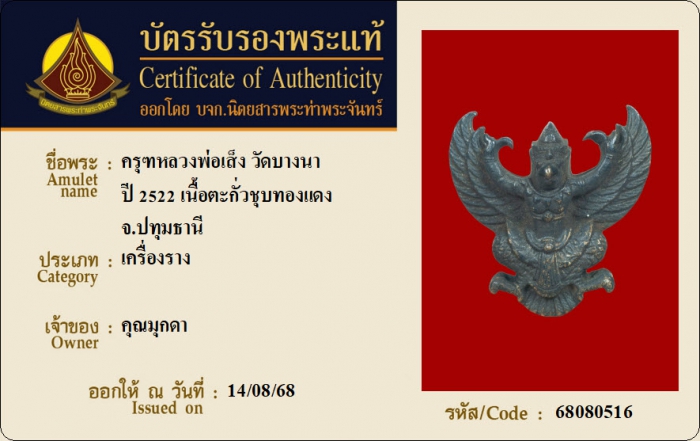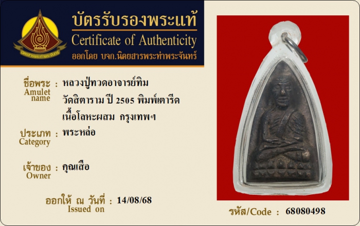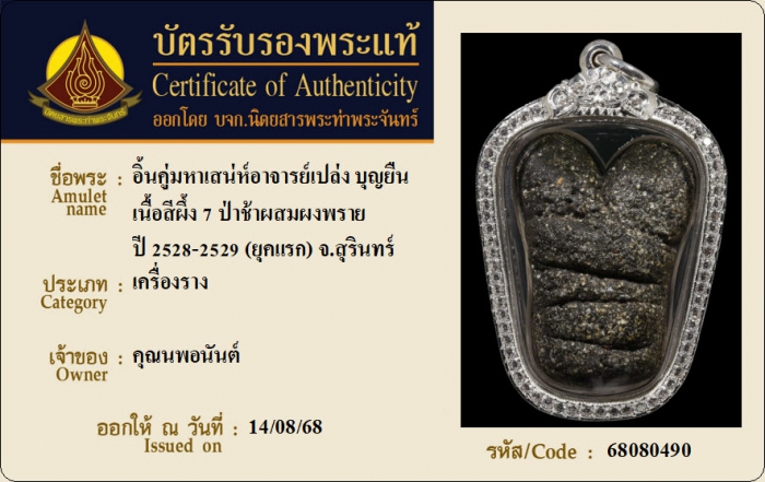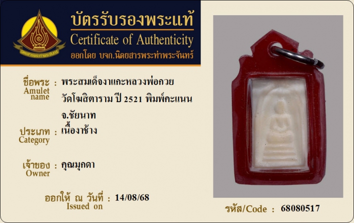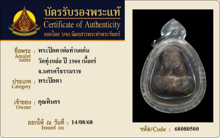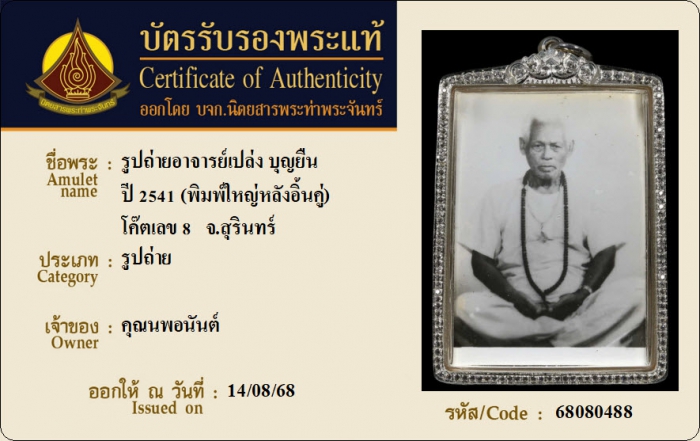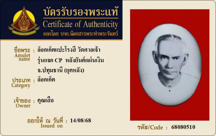 ค้นหาใบการันตีพระแท้