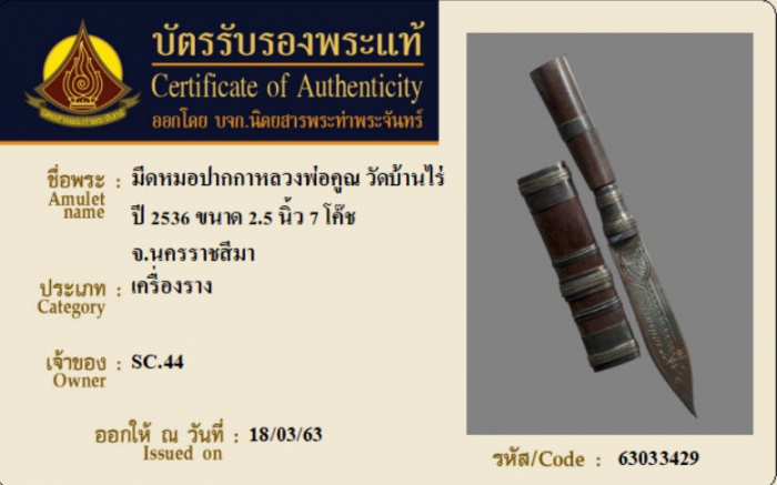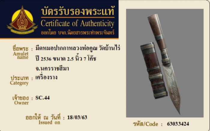 ค้นหาใบการันตีพระแท้