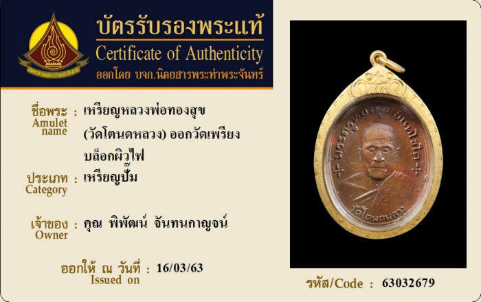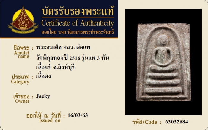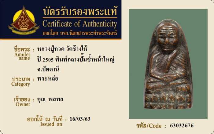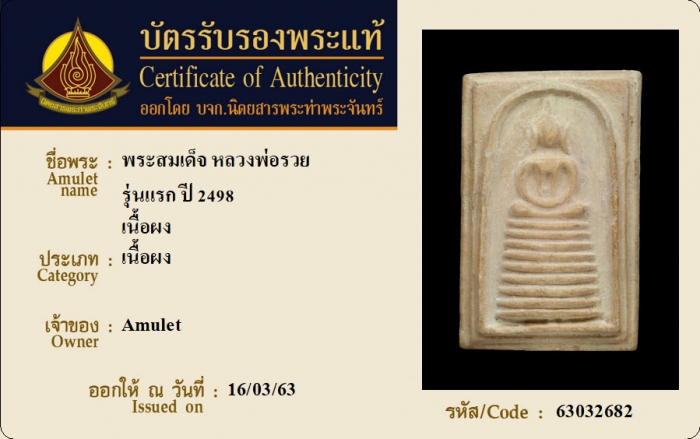 ค้นหาใบการันตีพระแท้