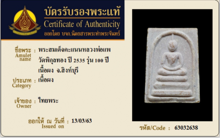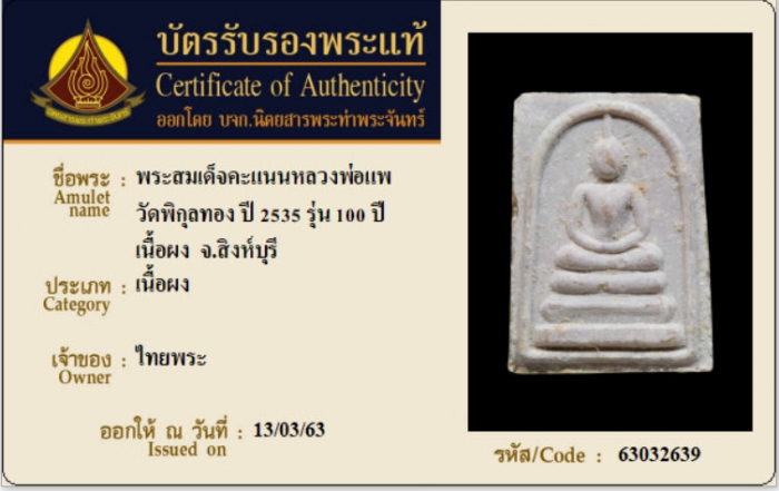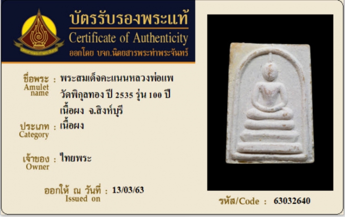 ค้นหาใบการันตีพระแท้