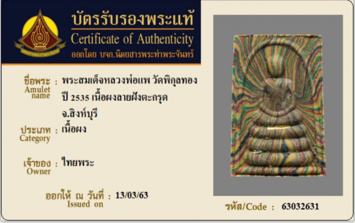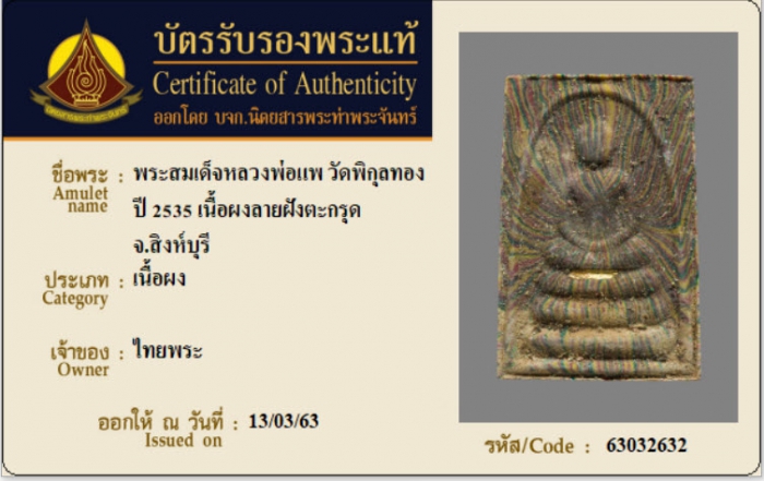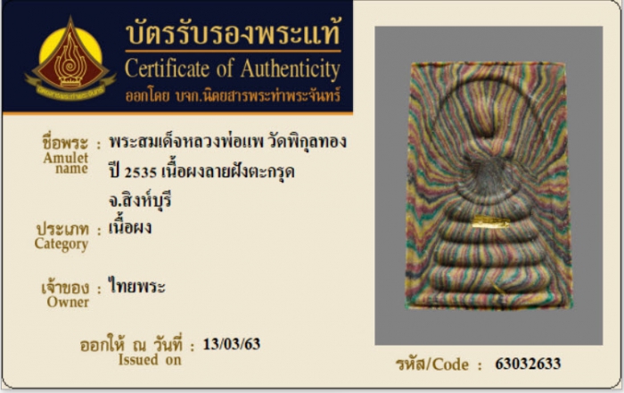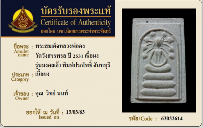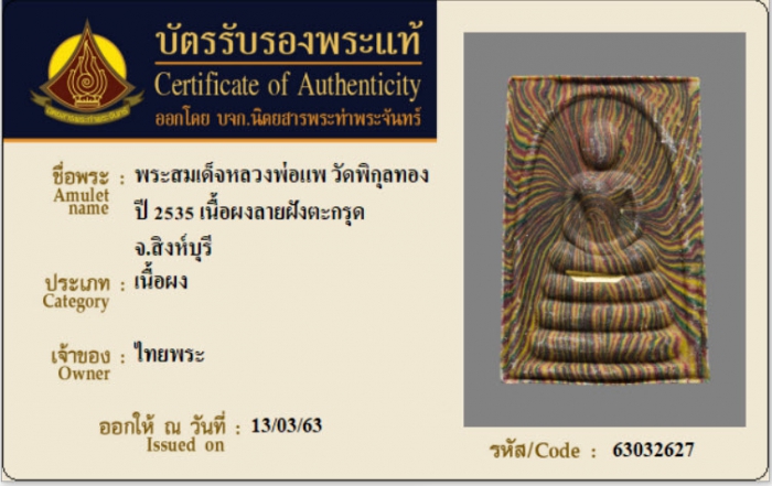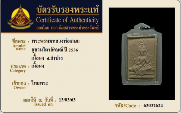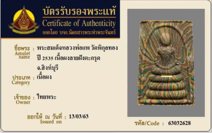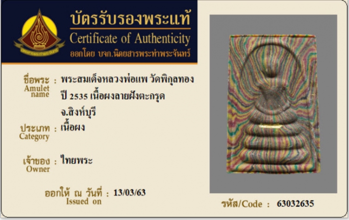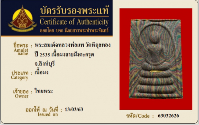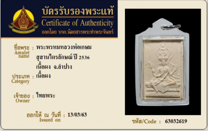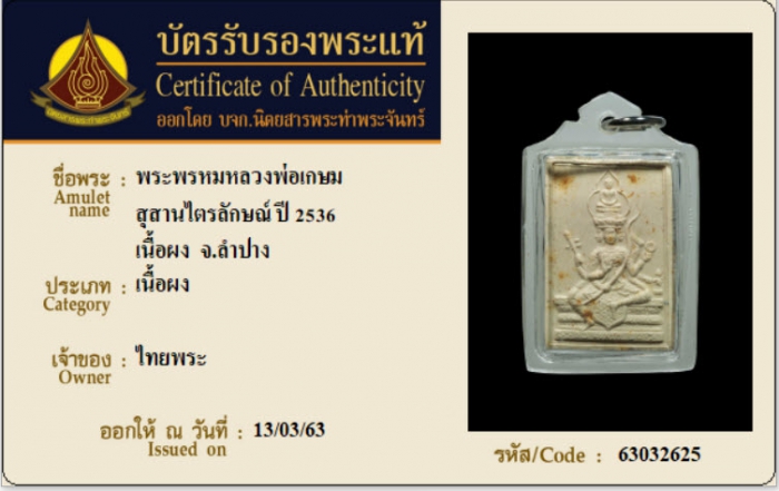 ค้นหาใบการันตีพระแท้