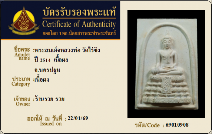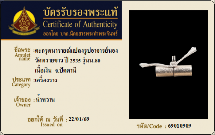 ค้นหาใบการันตีพระแท้