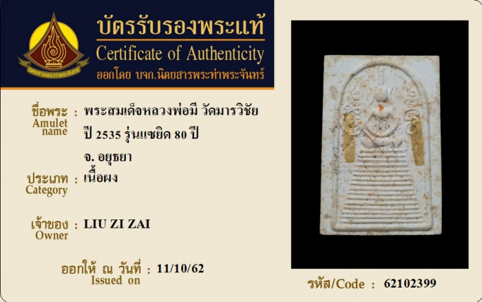 ค้นหาใบการันตีพระแท้
