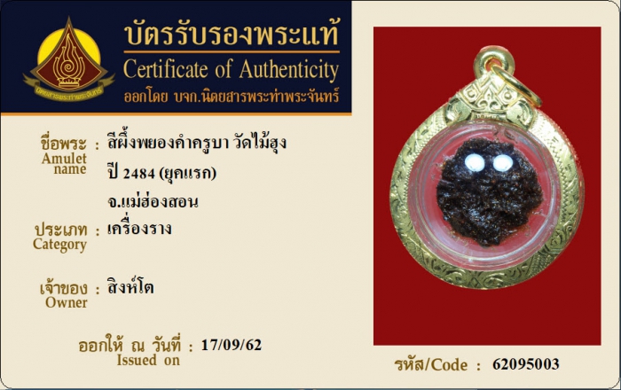 ค้นหาใบการันตีพระแท้