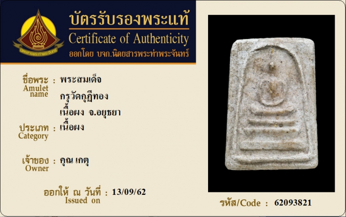 ค้นหาใบการันตีพระแท้