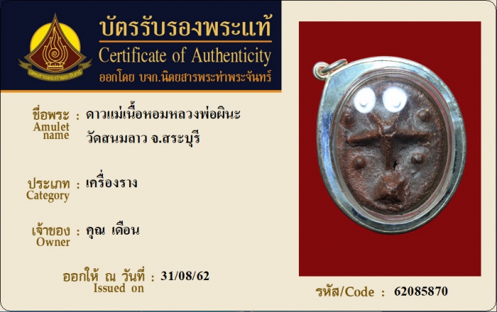 ค้นหาใบการันตีพระแท้