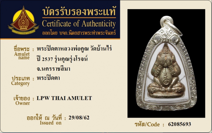 ค้นหาใบการันตีพระแท้
