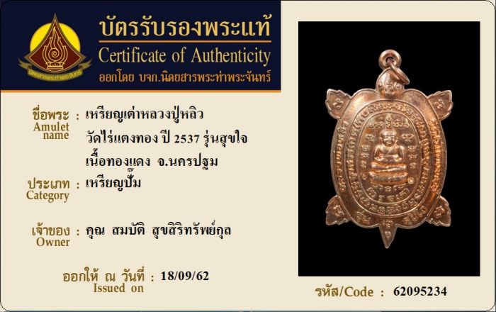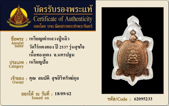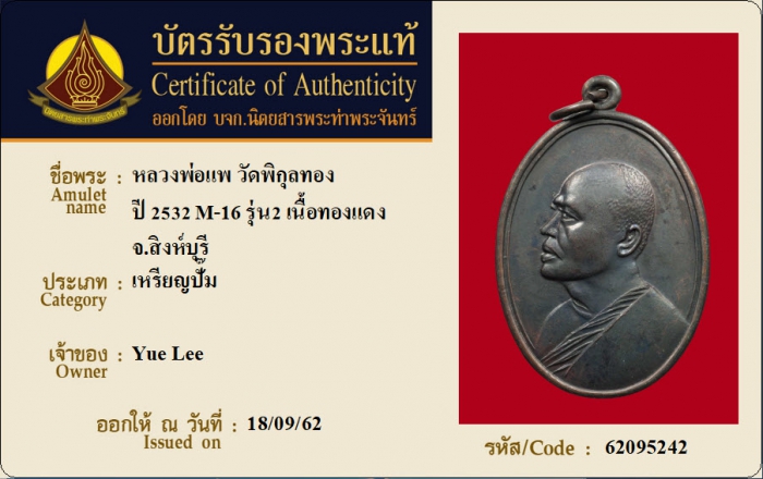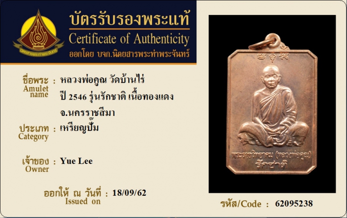 ค้นหาใบการันตีพระแท้