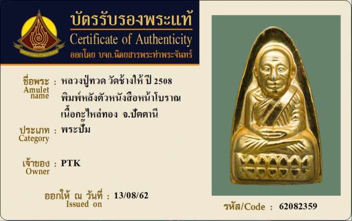 ค้นหาใบการันตีพระแท้