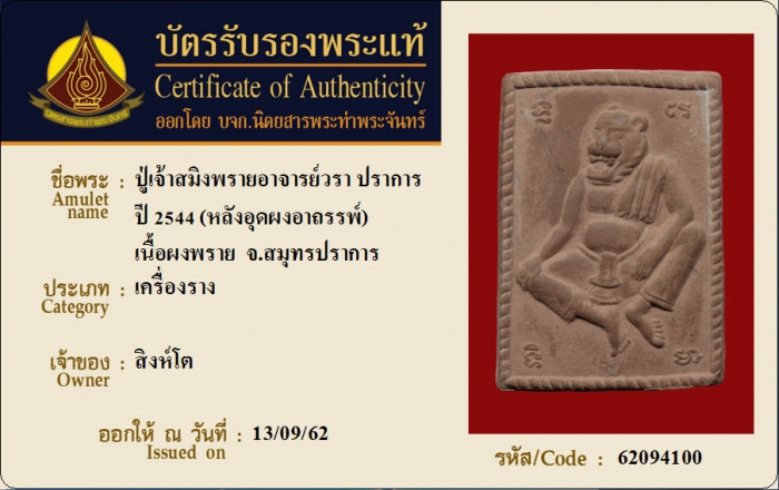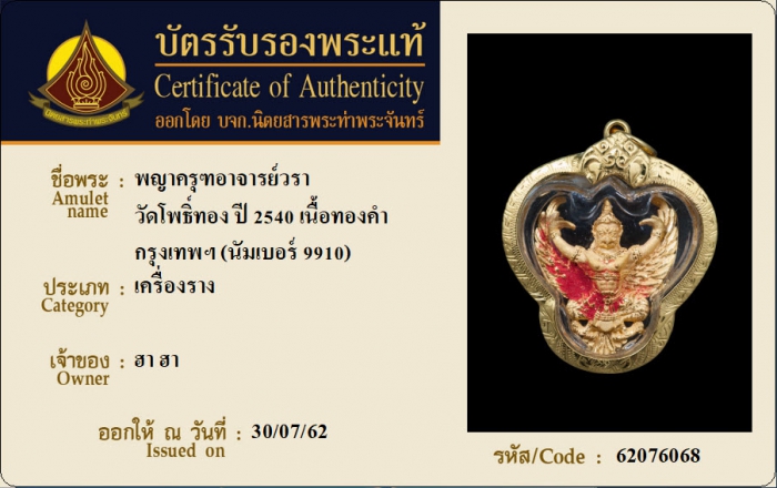 ค้นหาใบการันตีพระแท้
