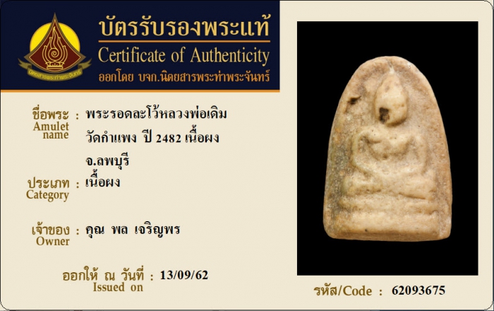 ค้นหาใบการันตีพระแท้