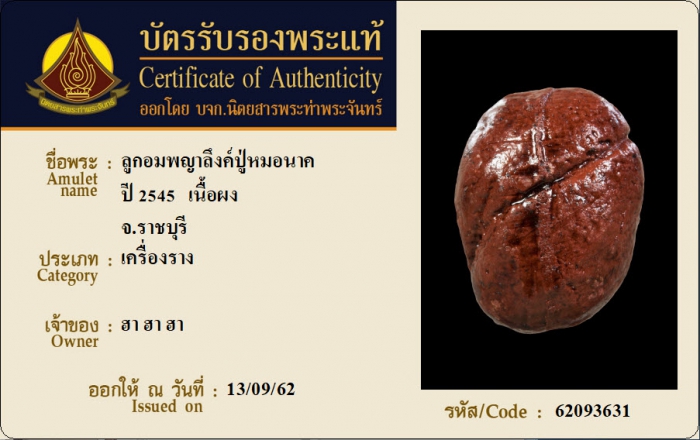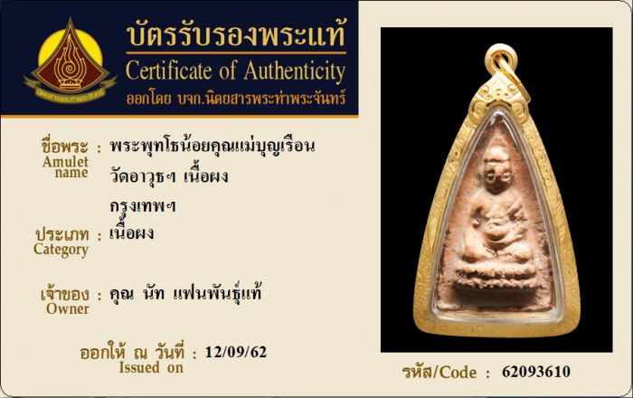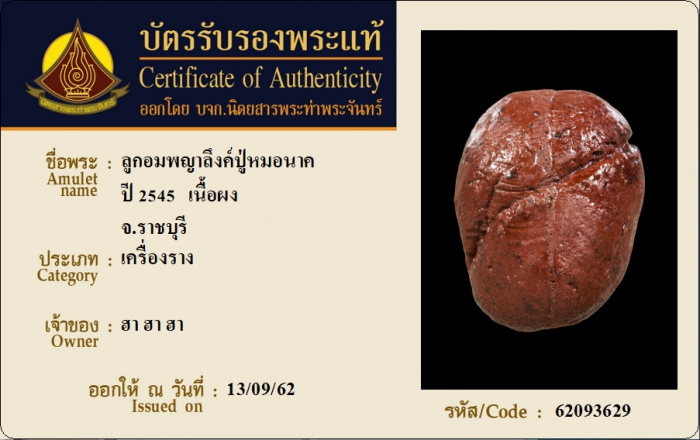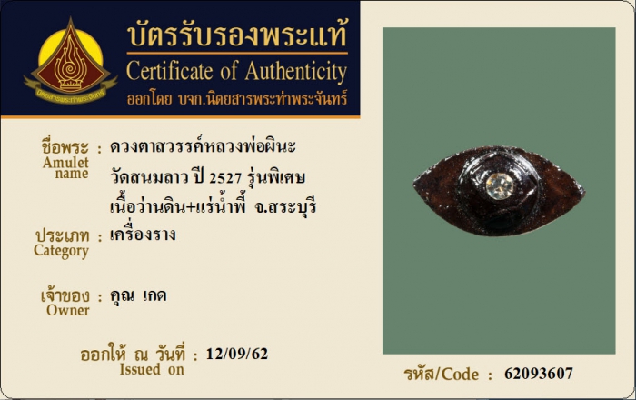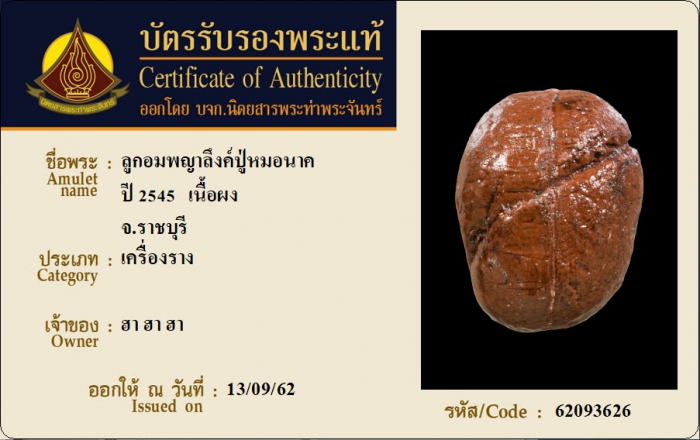 ค้นหาใบการันตีพระแท้