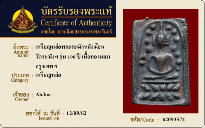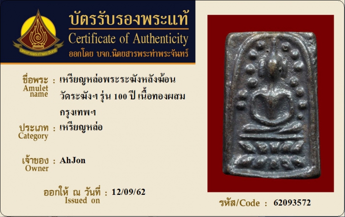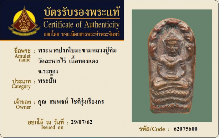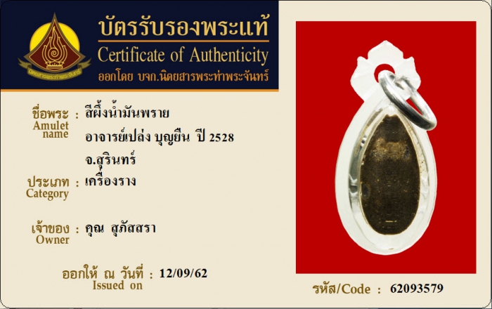 ค้นหาใบการันตีพระแท้