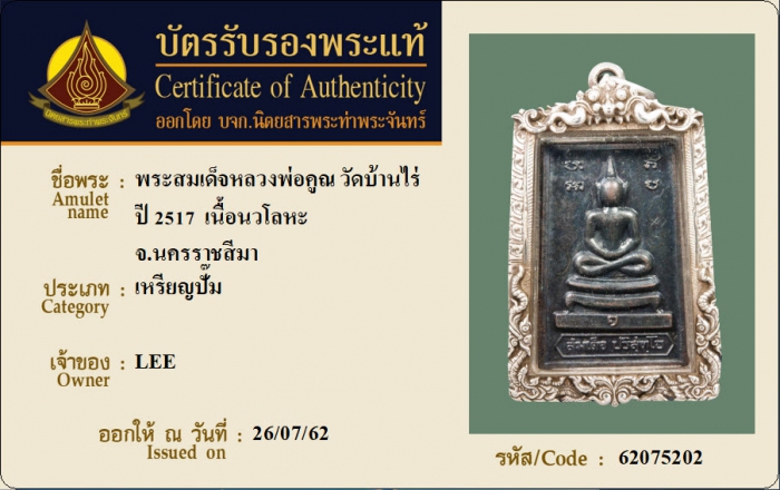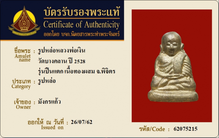 ค้นหาใบการันตีพระแท้