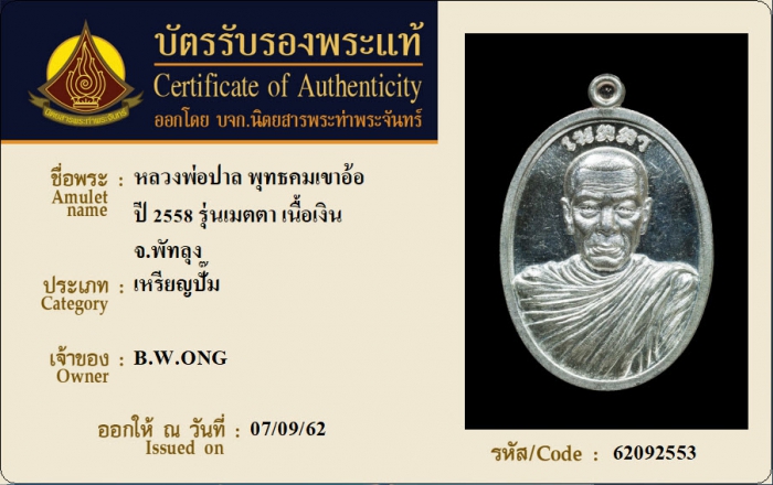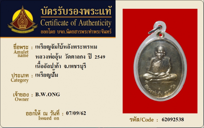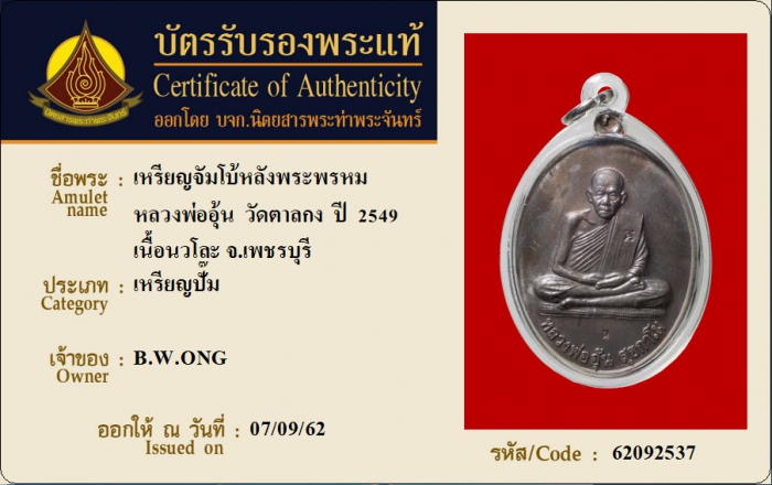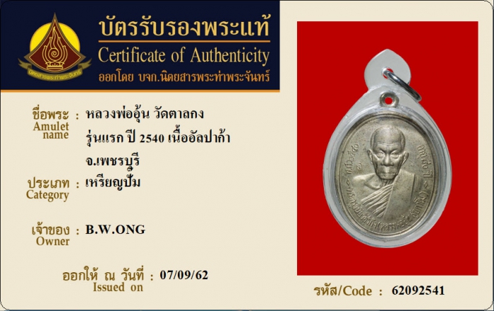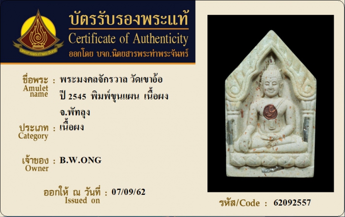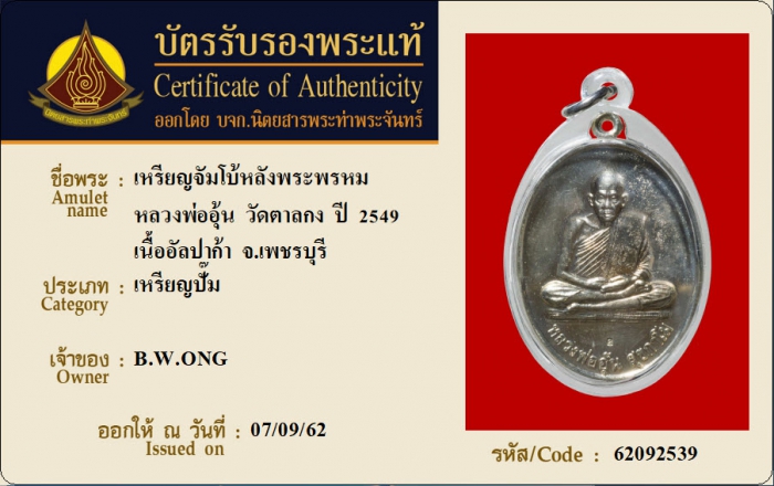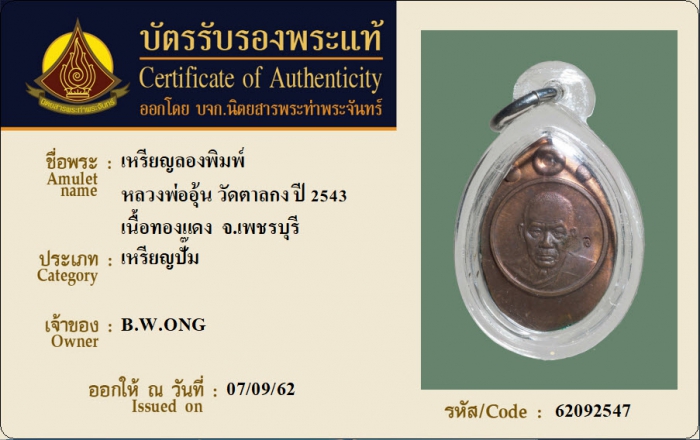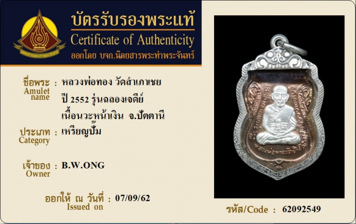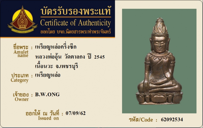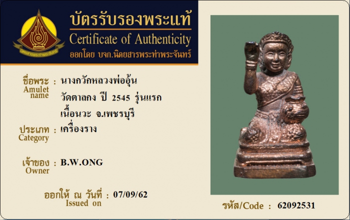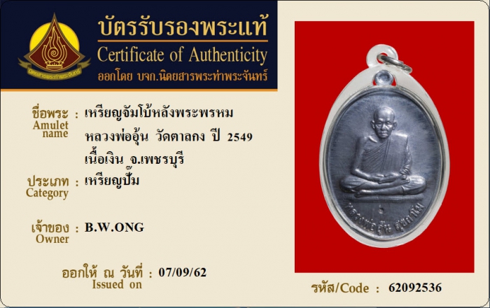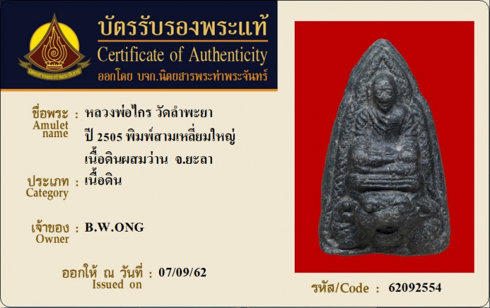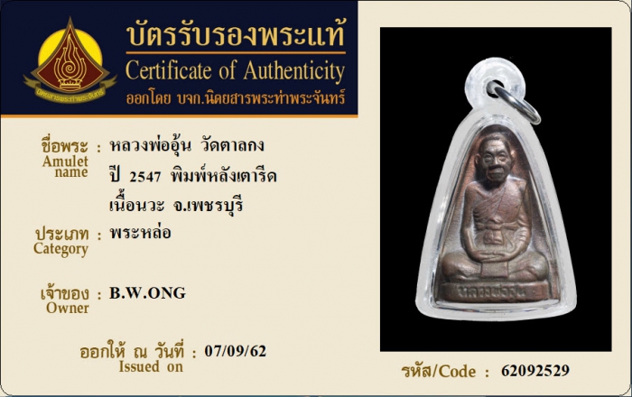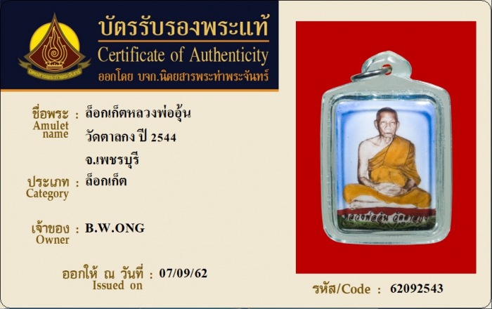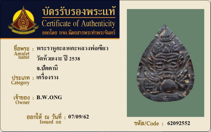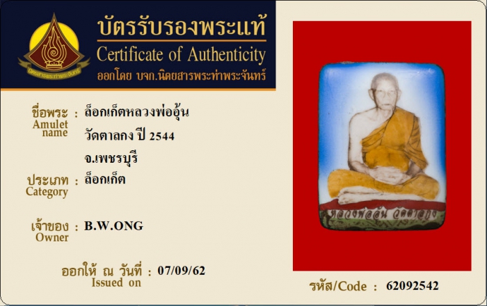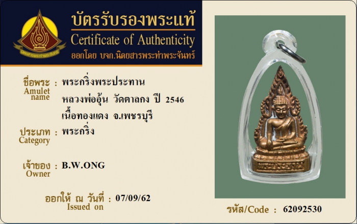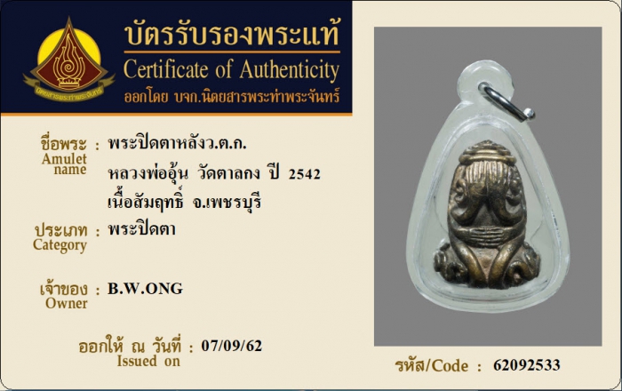 ค้นหาใบการันตีพระแท้