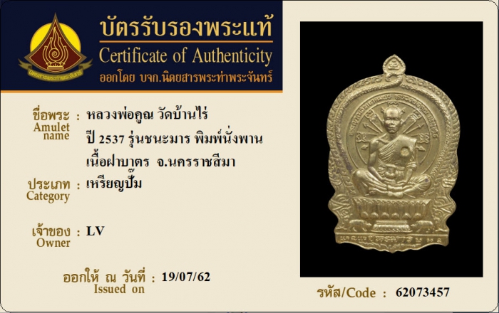ค้นหาใบการันตีพระแท้