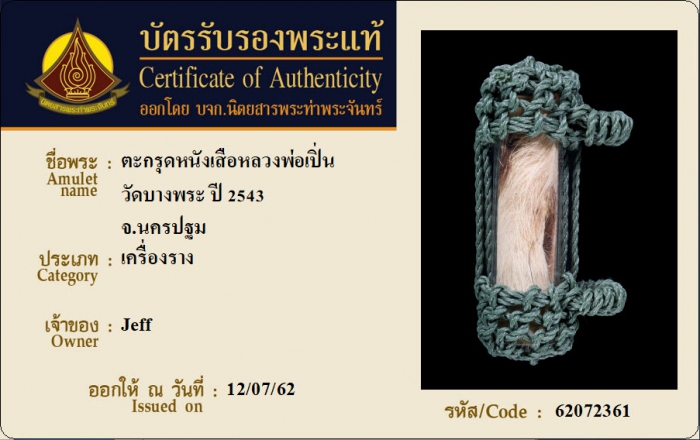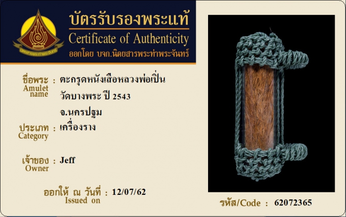 ค้นหาใบการันตีพระแท้
