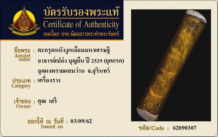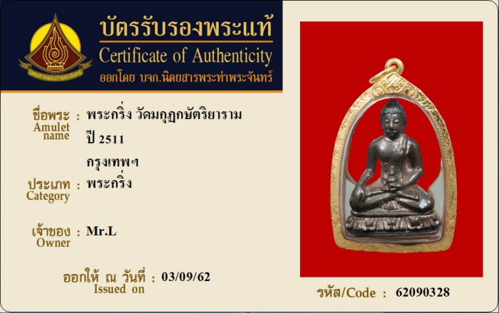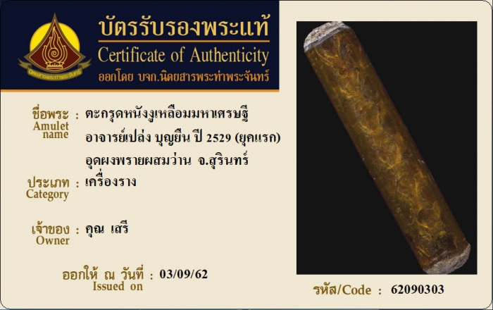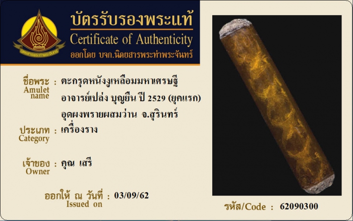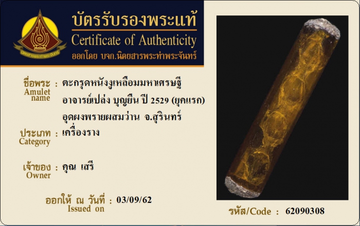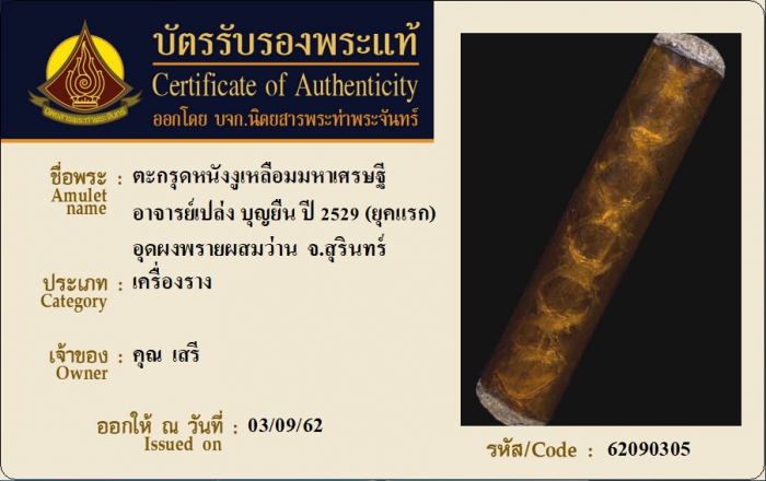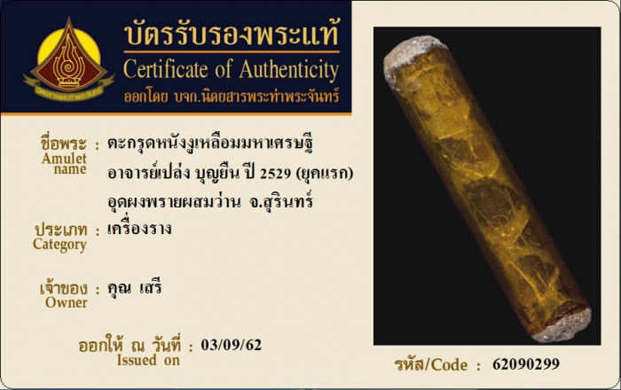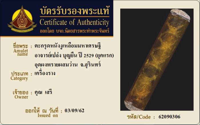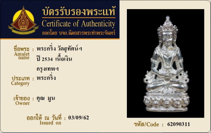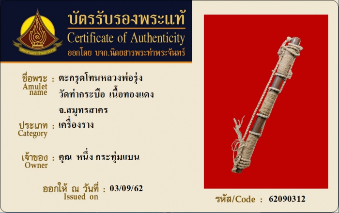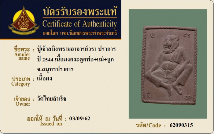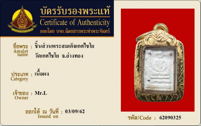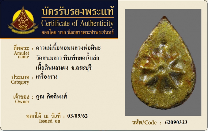 ค้นหาใบการันตีพระแท้