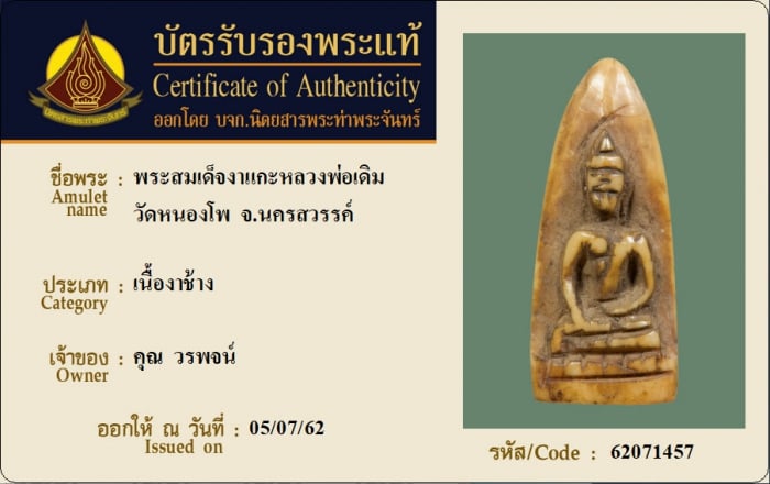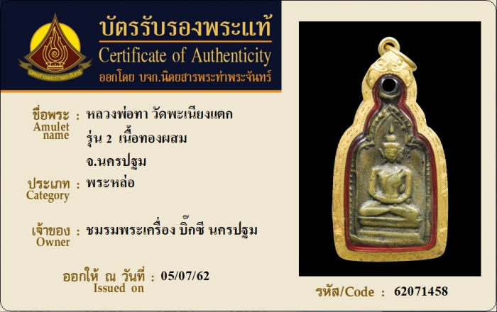 ค้นหาใบการันตีพระแท้