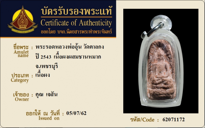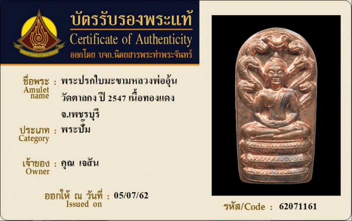 ค้นหาใบการันตีพระแท้
