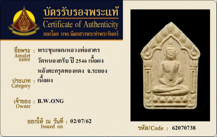 ค้นหาใบการันตีพระแท้
