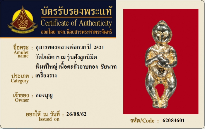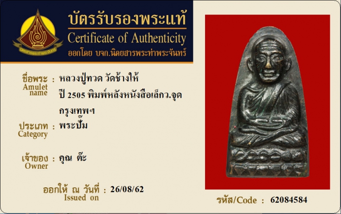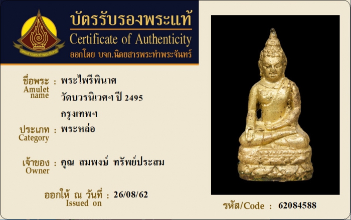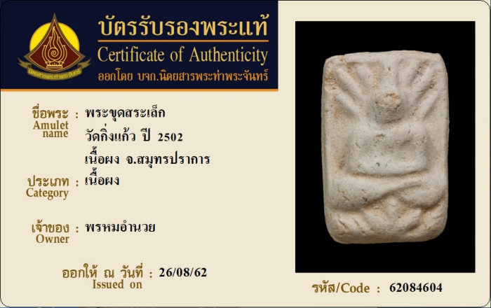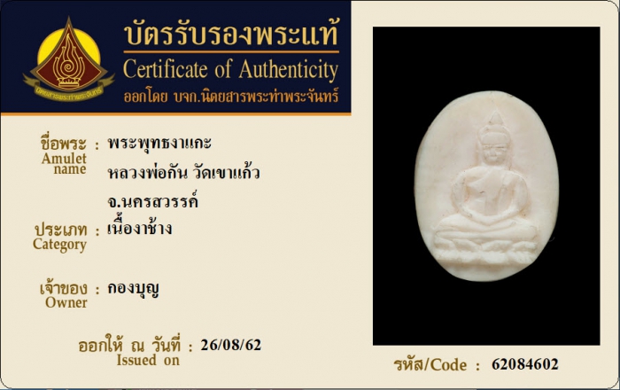 ค้นหาใบการันตีพระแท้