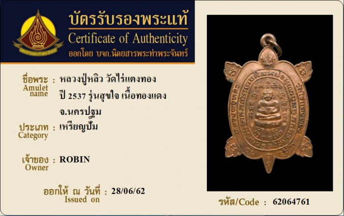 ค้นหาใบการันตีพระแท้