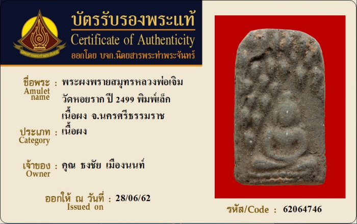 ค้นหาใบการันตีพระแท้