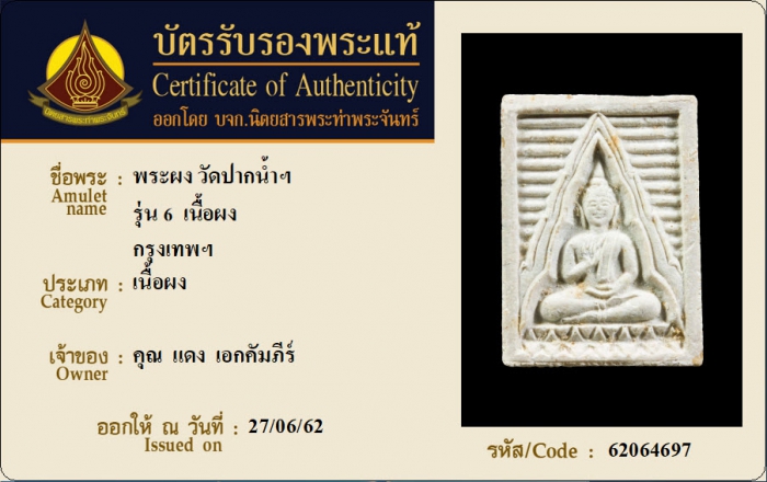 ค้นหาใบการันตีพระแท้