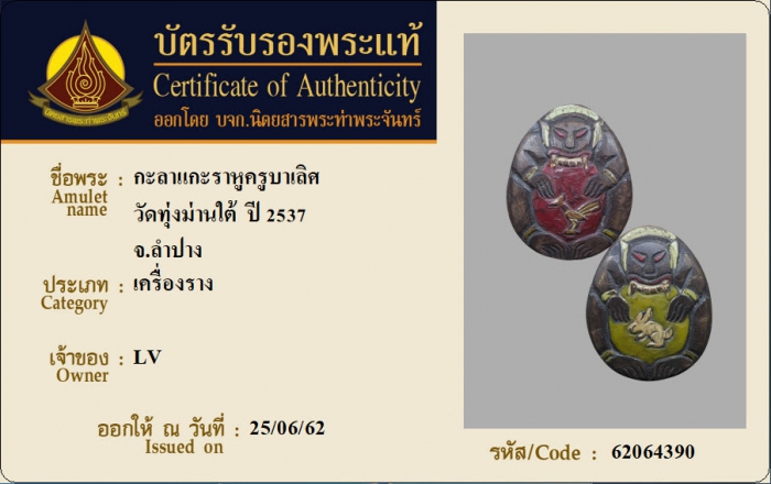 ค้นหาใบการันตีพระแท้