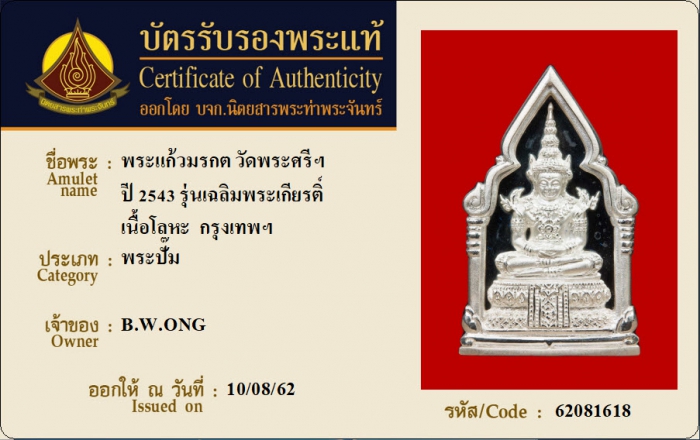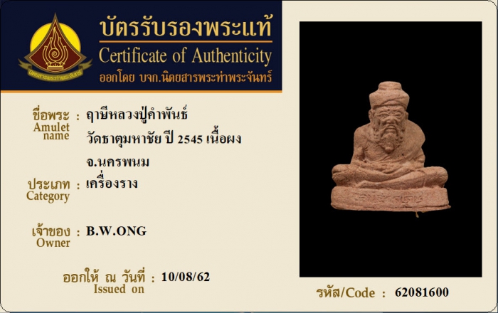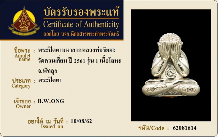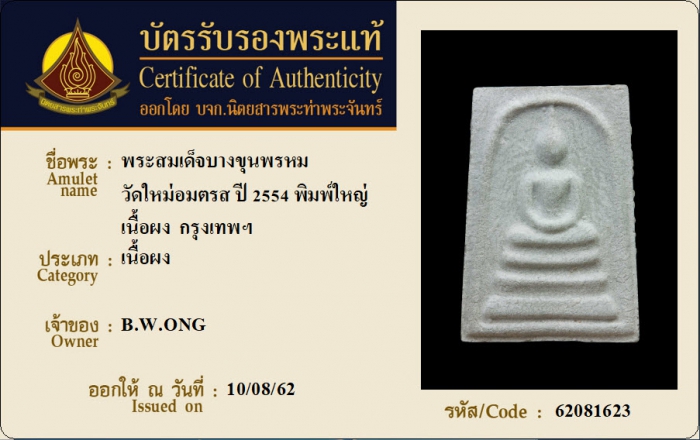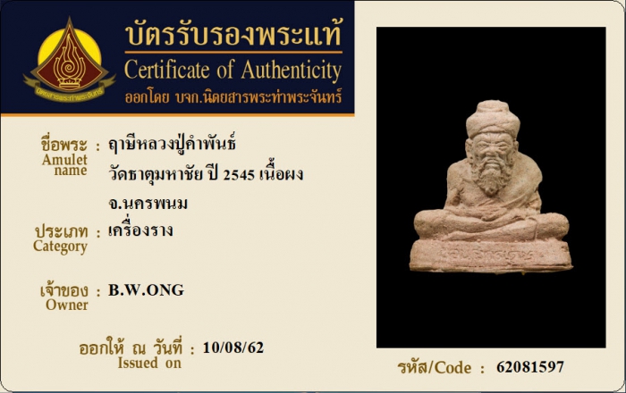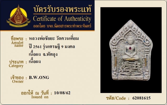 ค้นหาใบการันตีพระแท้