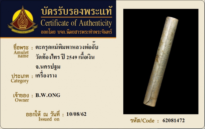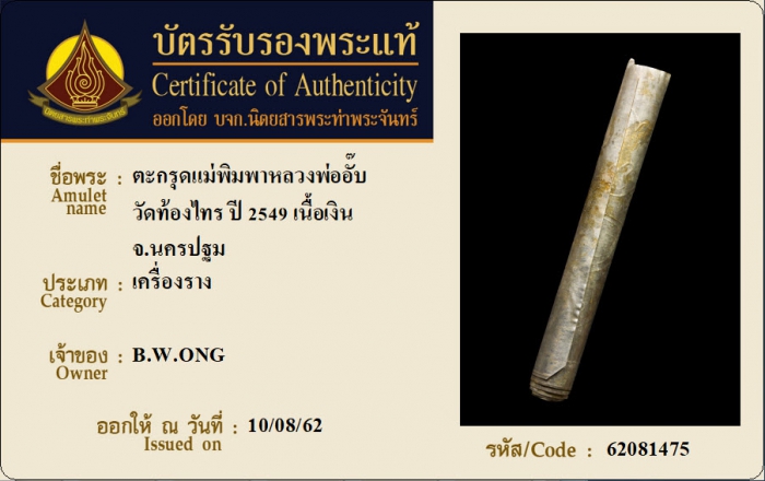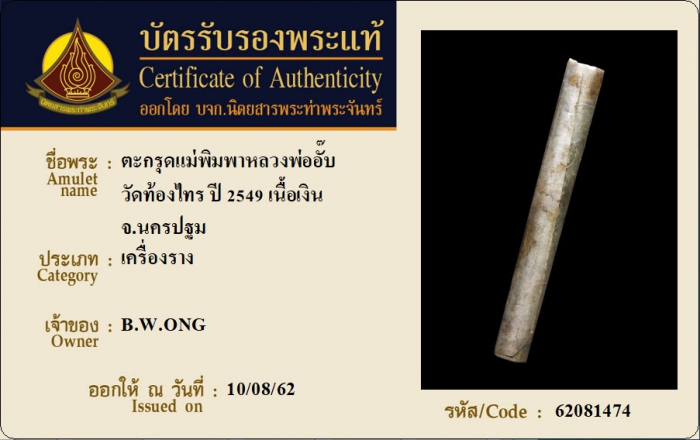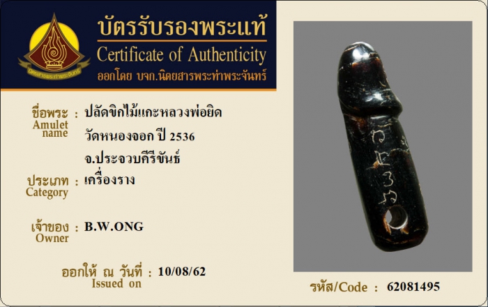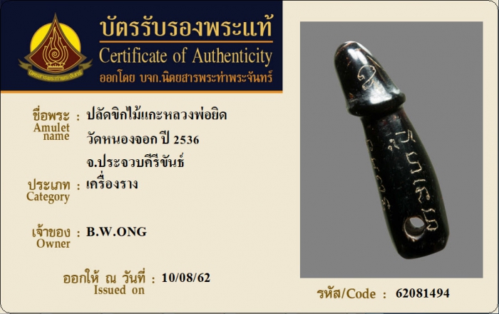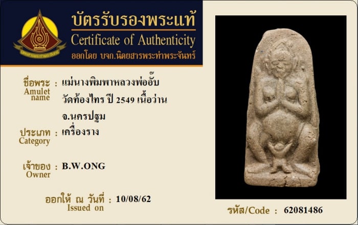 ค้นหาใบการันตีพระแท้