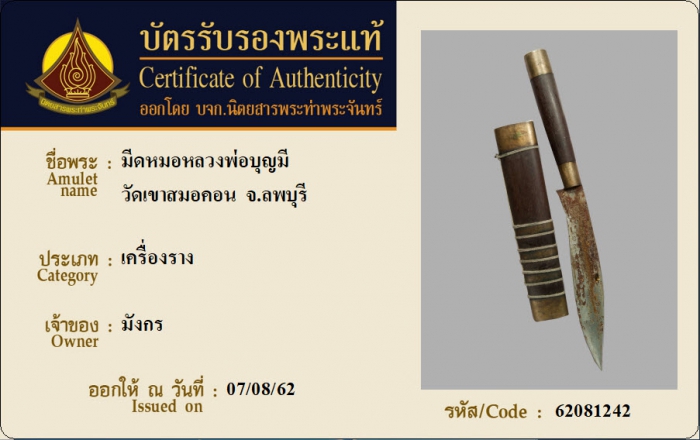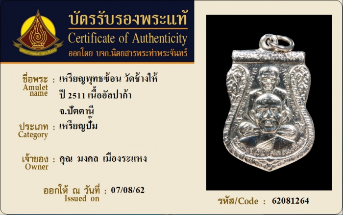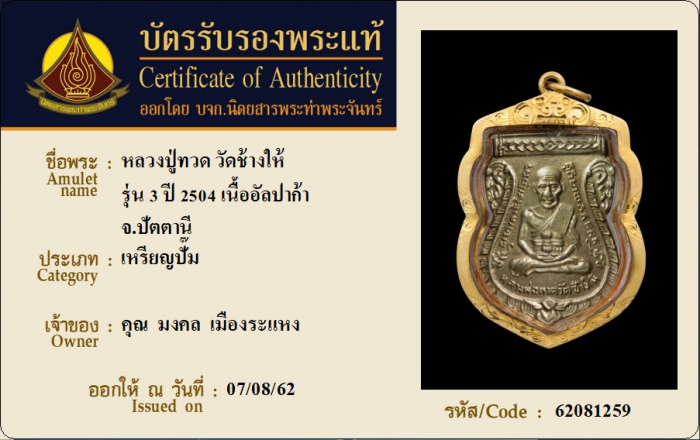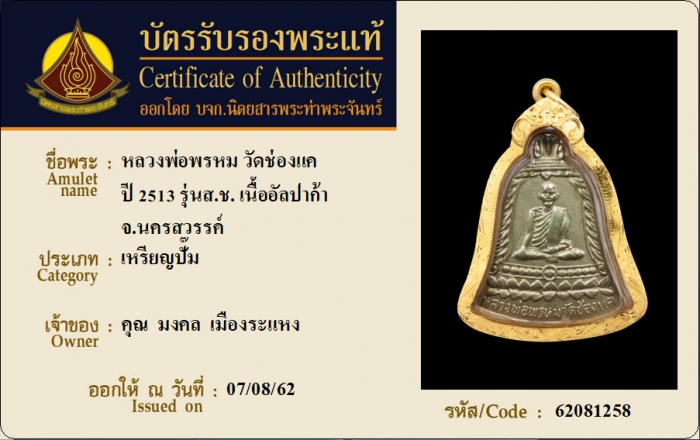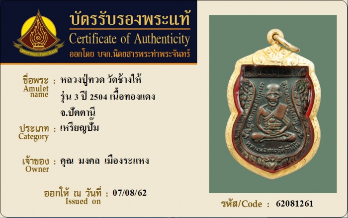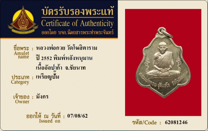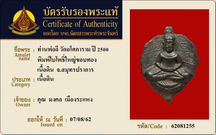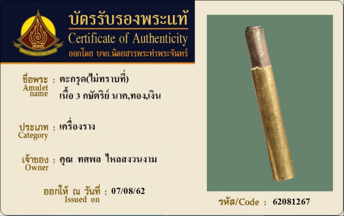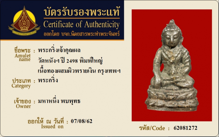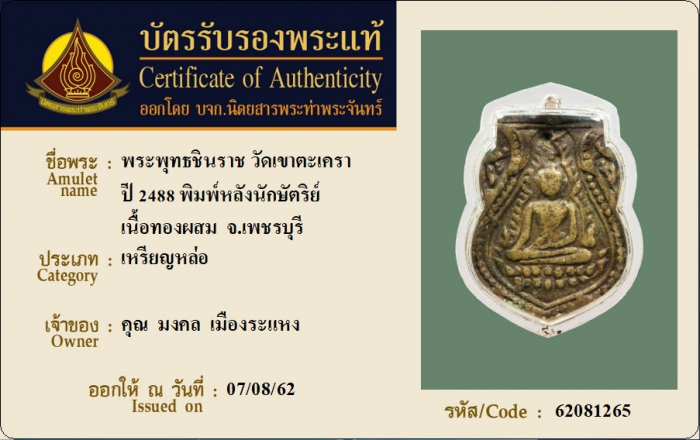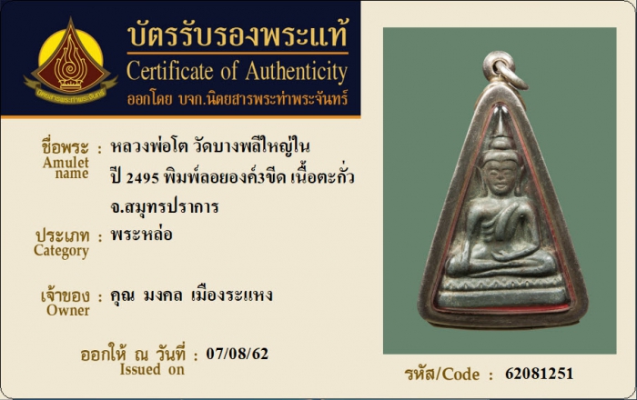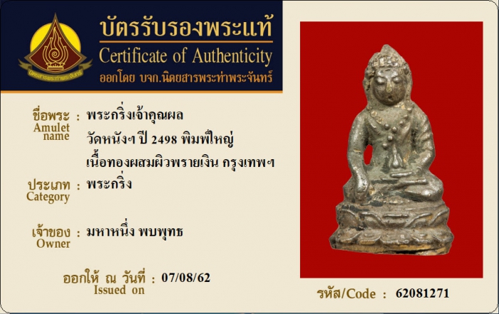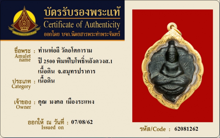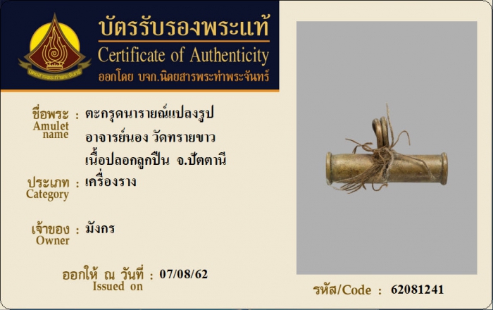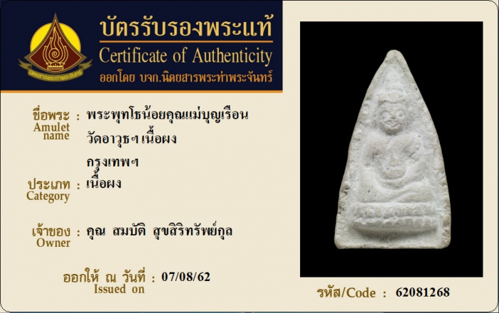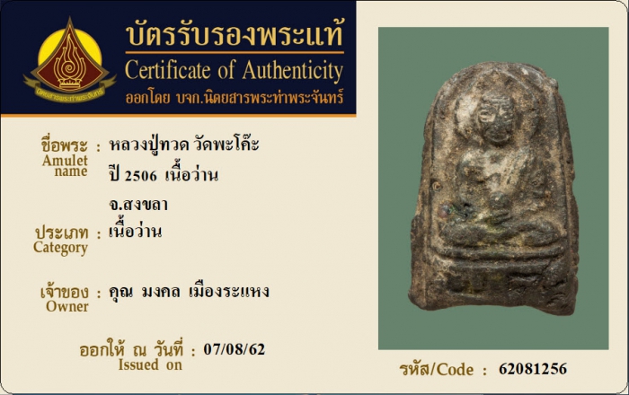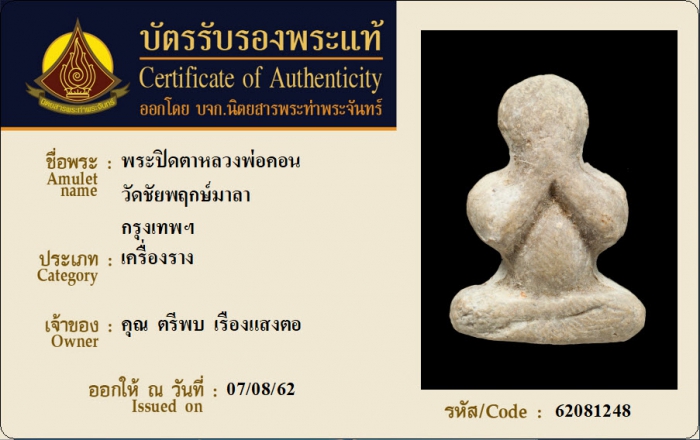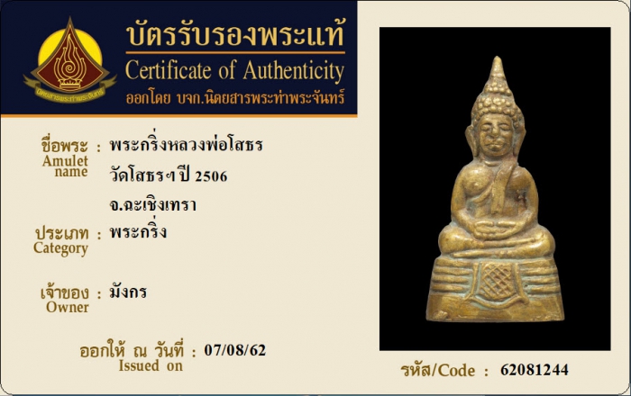 ค้นหาใบการันตีพระแท้