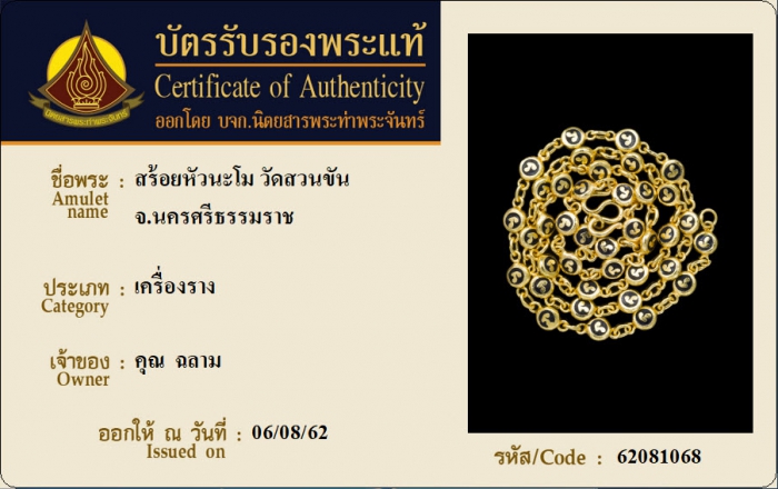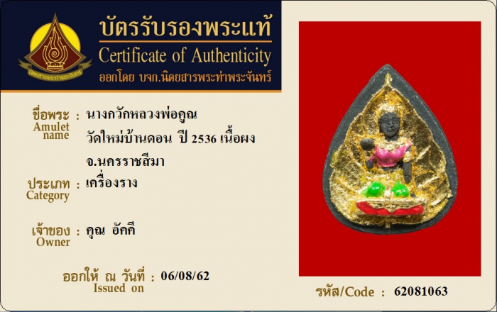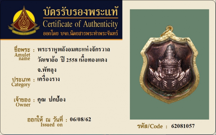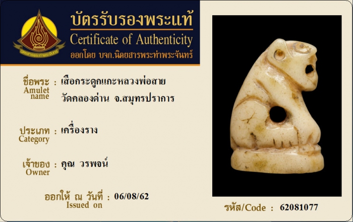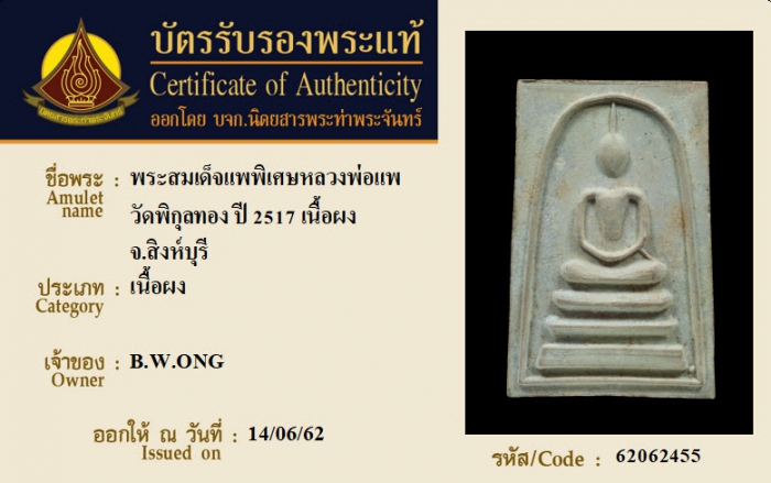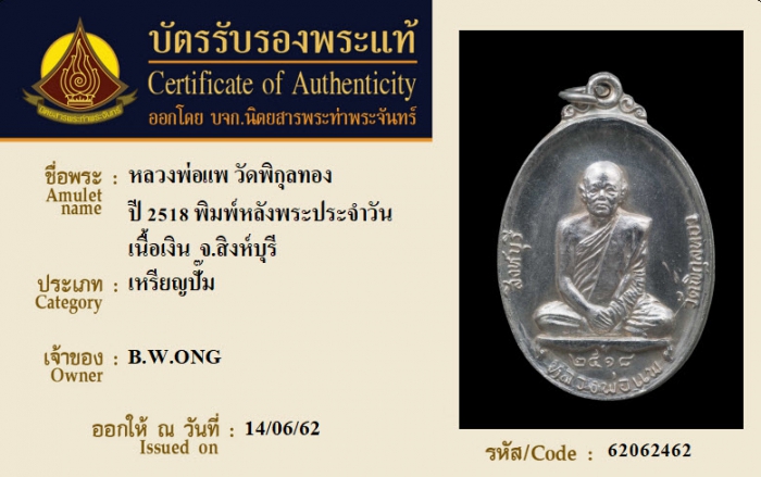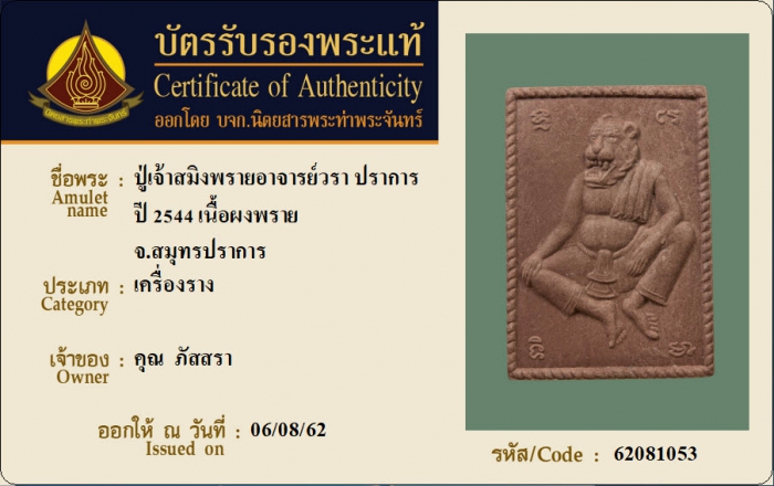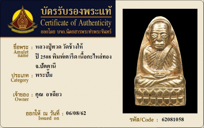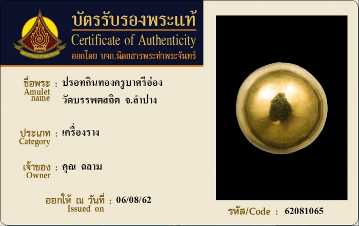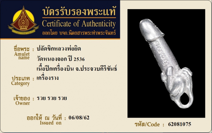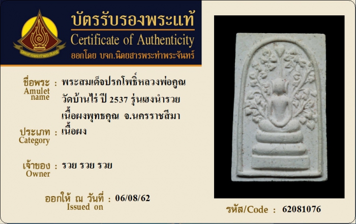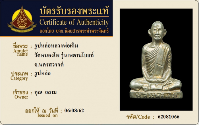 ค้นหาใบการันตีพระแท้