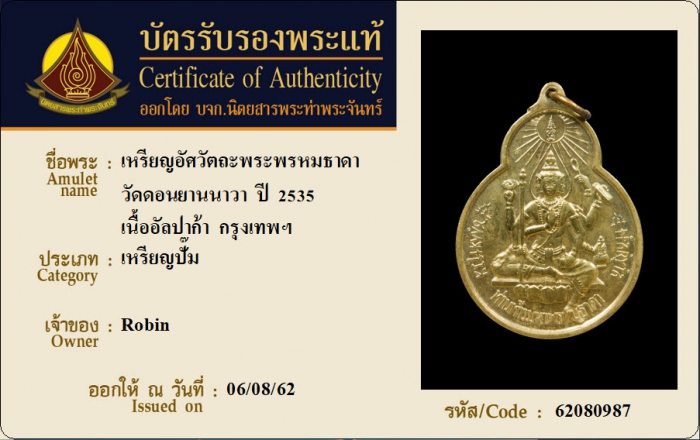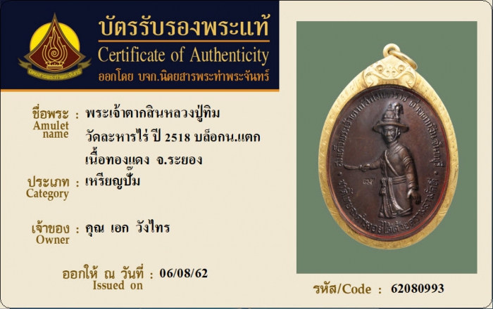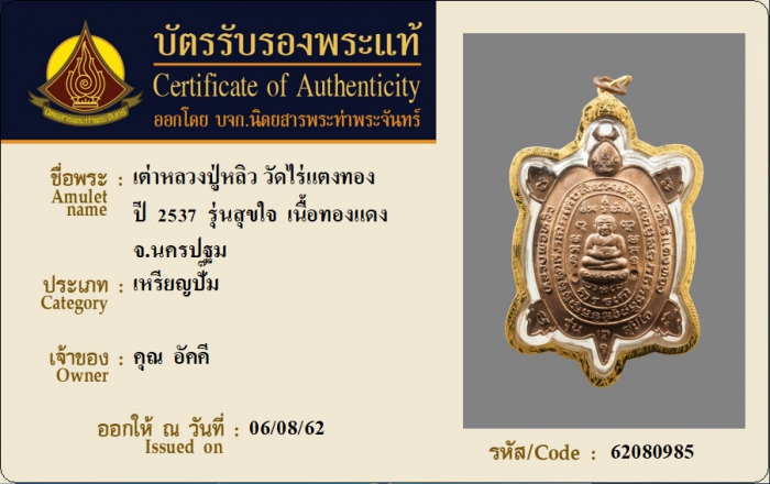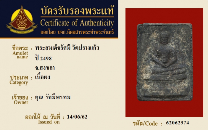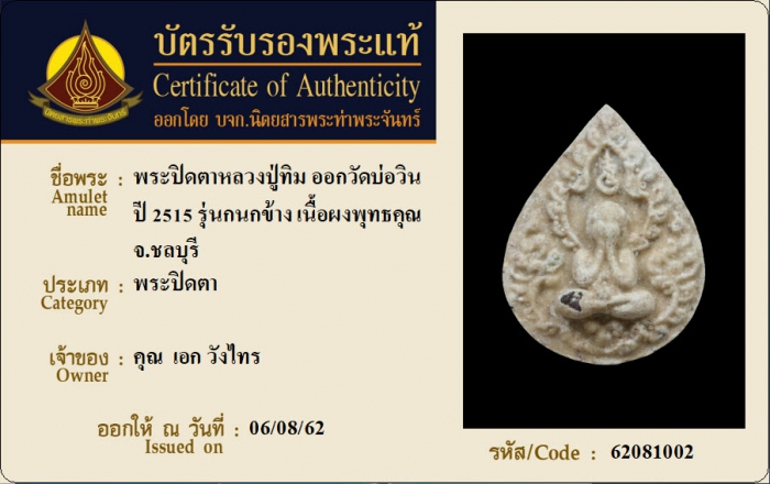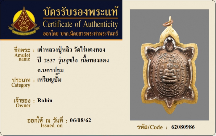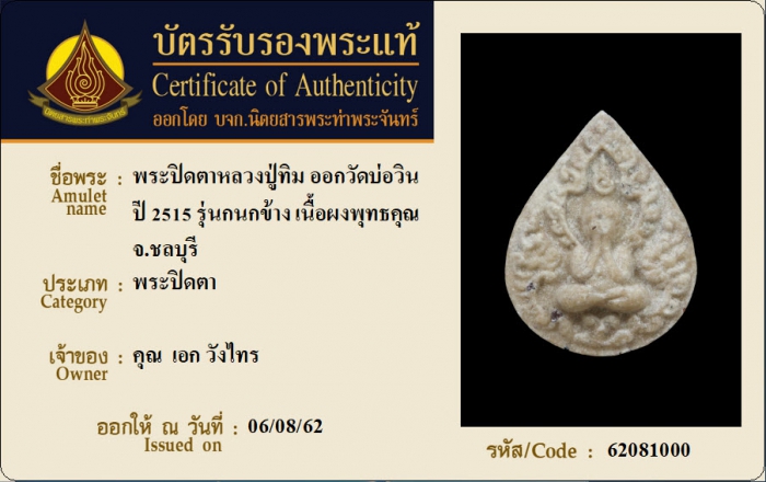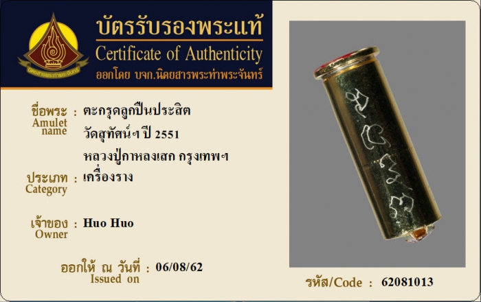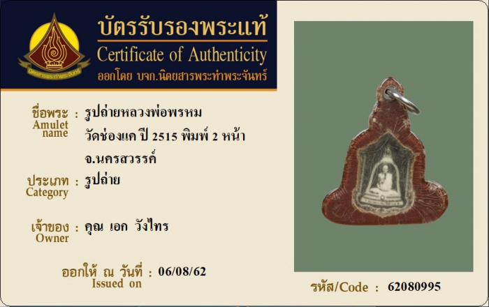 ค้นหาใบการันตีพระแท้