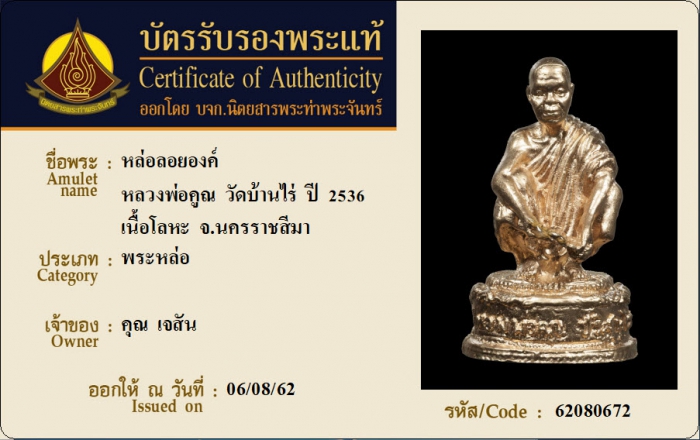ค้นหาใบการันตีพระแท้