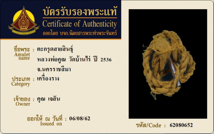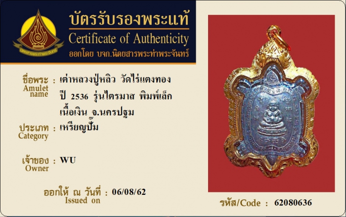 ค้นหาใบการันตีพระแท้